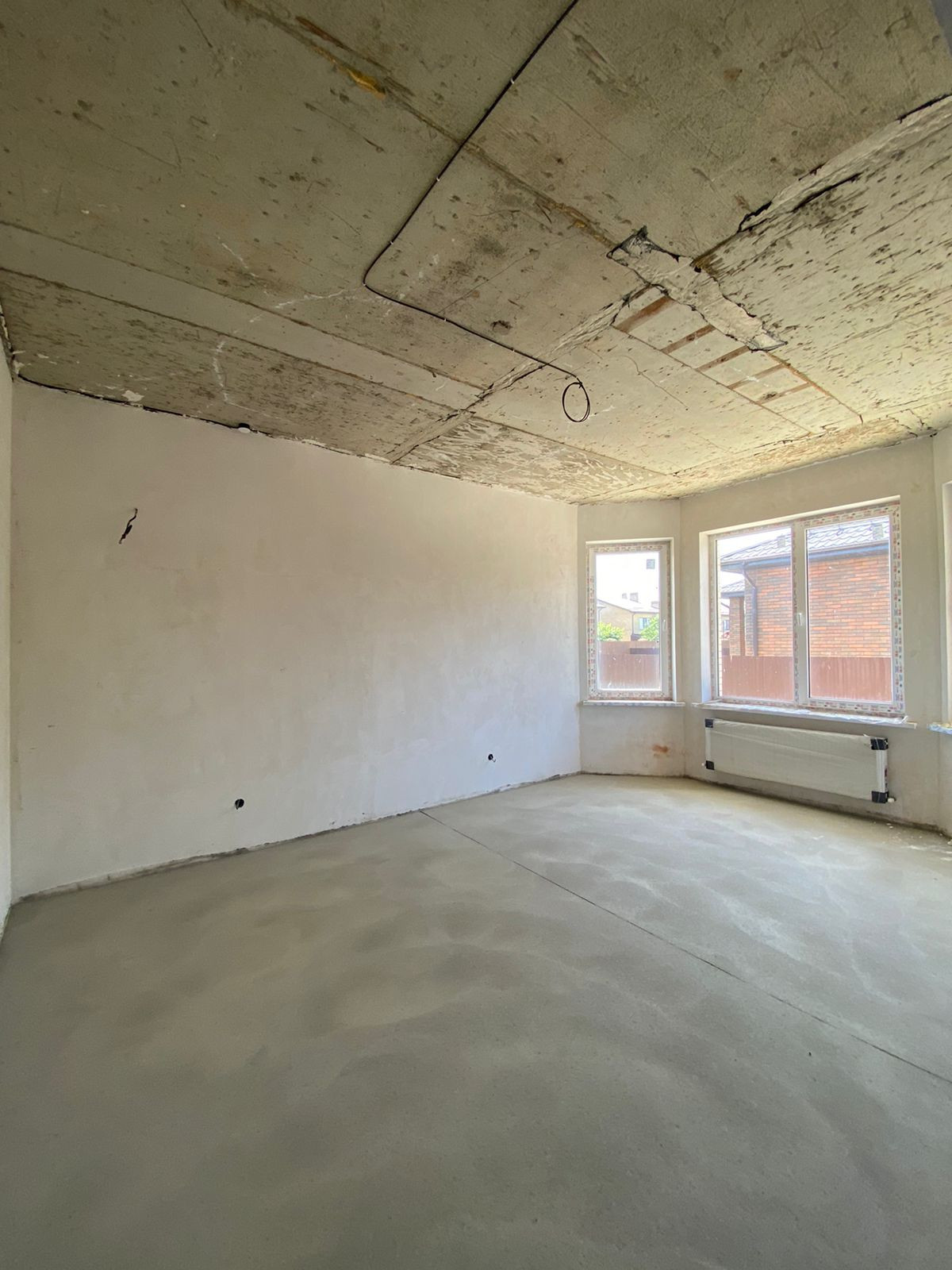 Вся отделка предчистовая: стяжка пола, штукатурка стен, разводка электрики и радиадоторов отопления, теплый пол в контактных зонах, а именно: кухня-гостиная, сан-узел и корридор. Электро-котел стоит, а так же фильтр водной очистки.