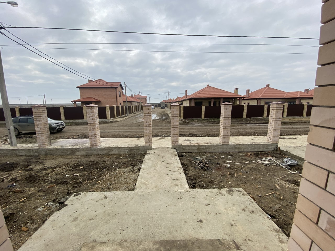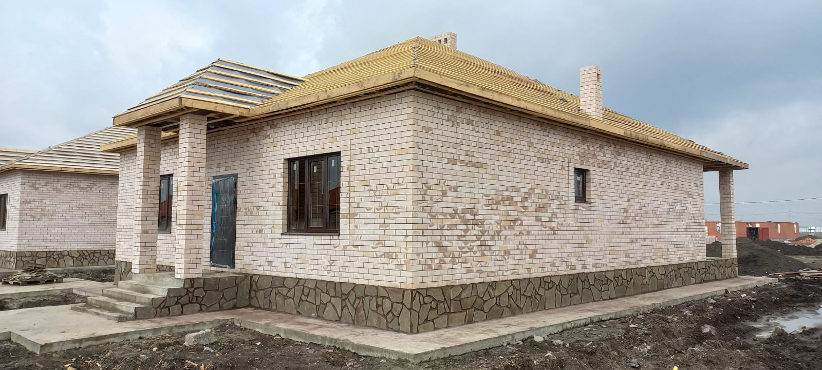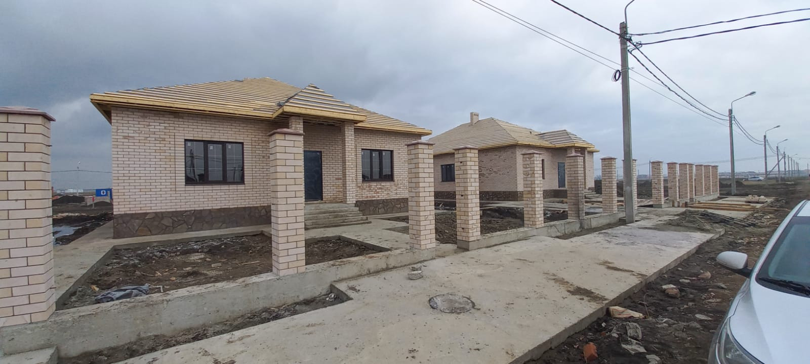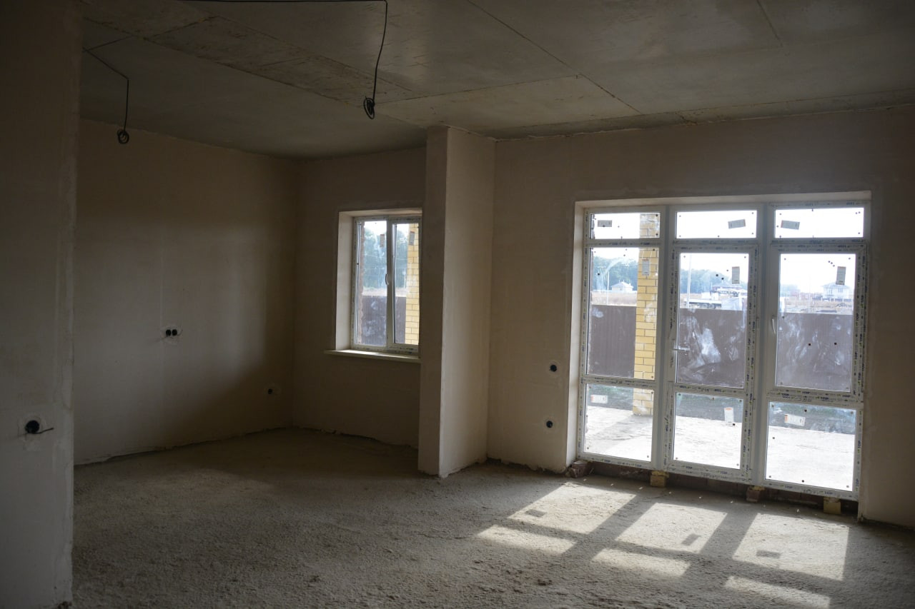 Свет (3 фазы), вода центральная, артезианская (скважина на КП глубиной более 200 метров), септик. ГАЗ по меже. Фундамент ленточный под всеми стенами, глубиной 80см. Перекрытие монолитное, что дает возможность обустроить второй этаж.