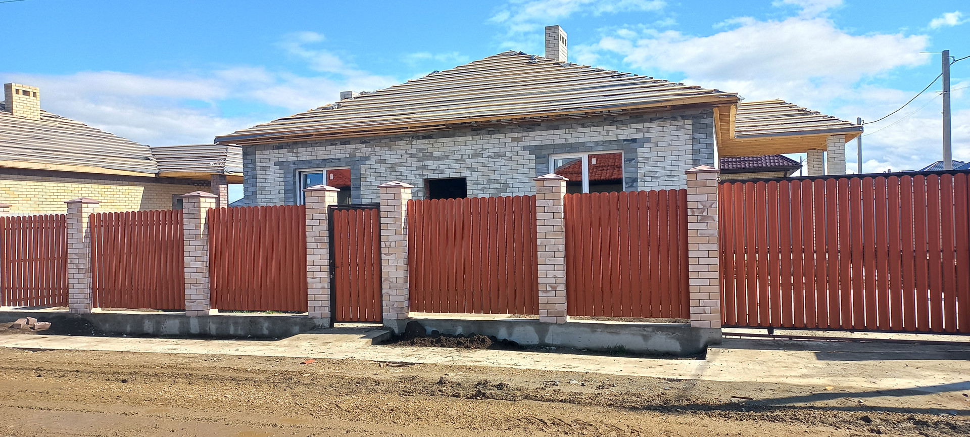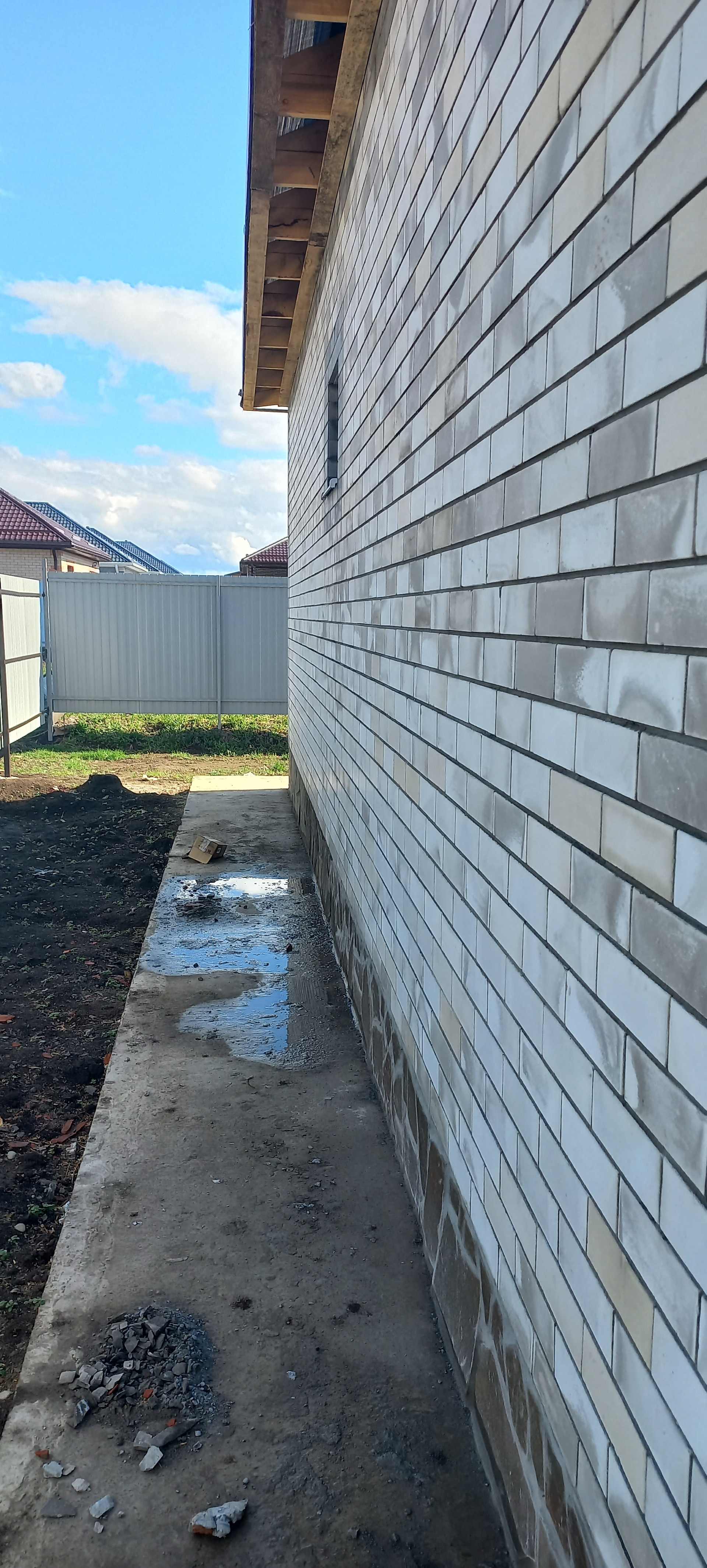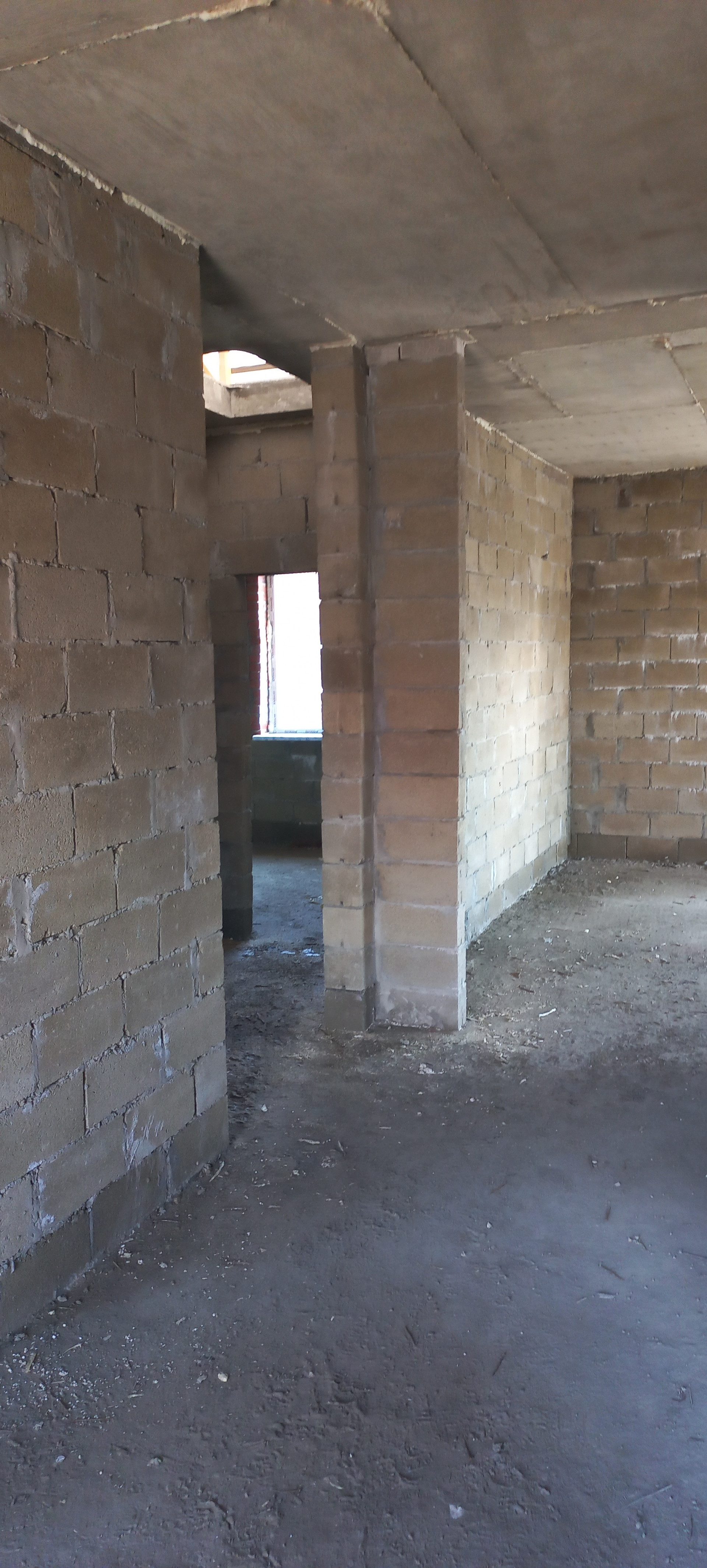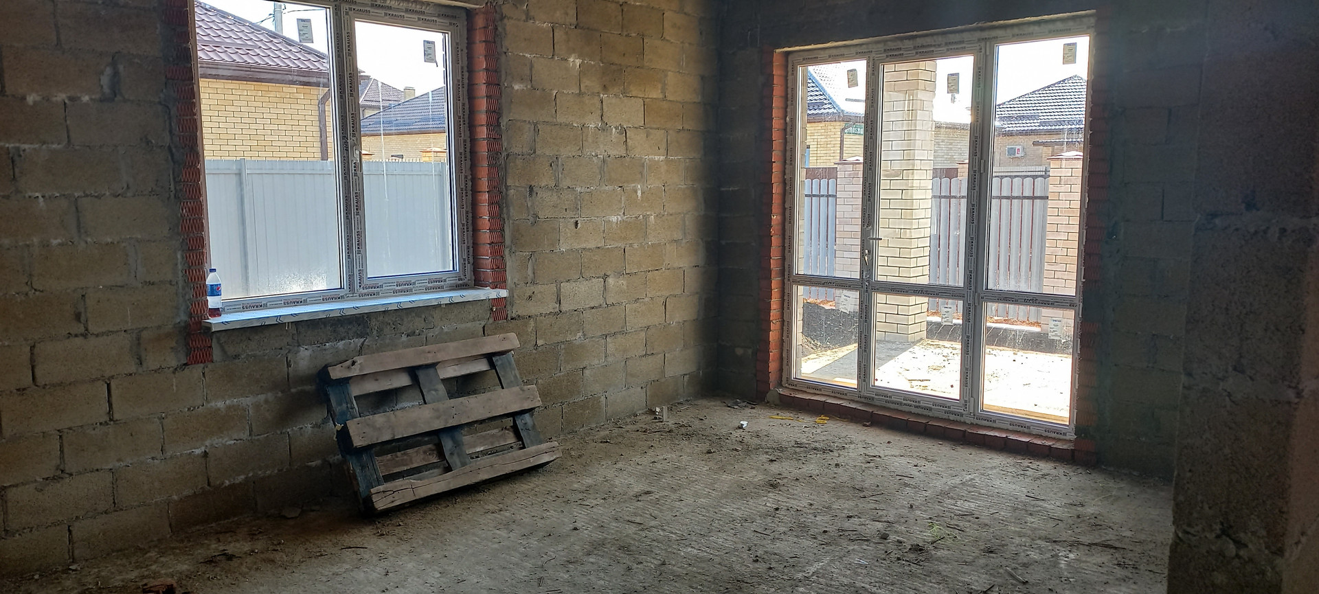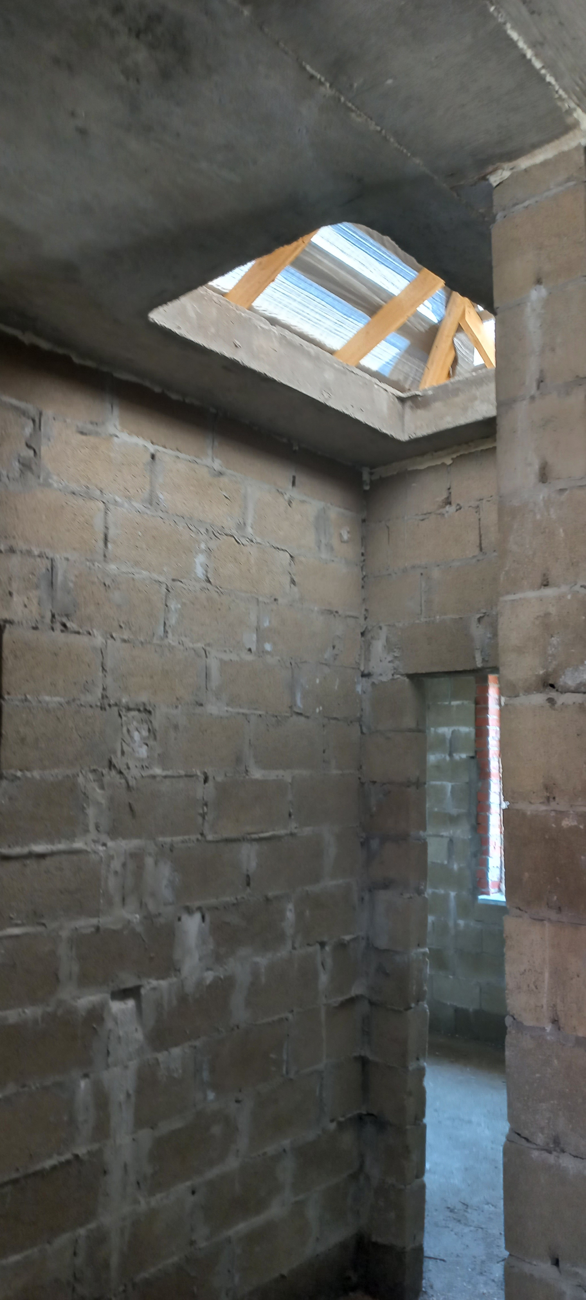 Фундамент ленточный под всеми стенами, глубиной 80см. Перекрытие монолитное, что дает возможность обустроить второй этаж.