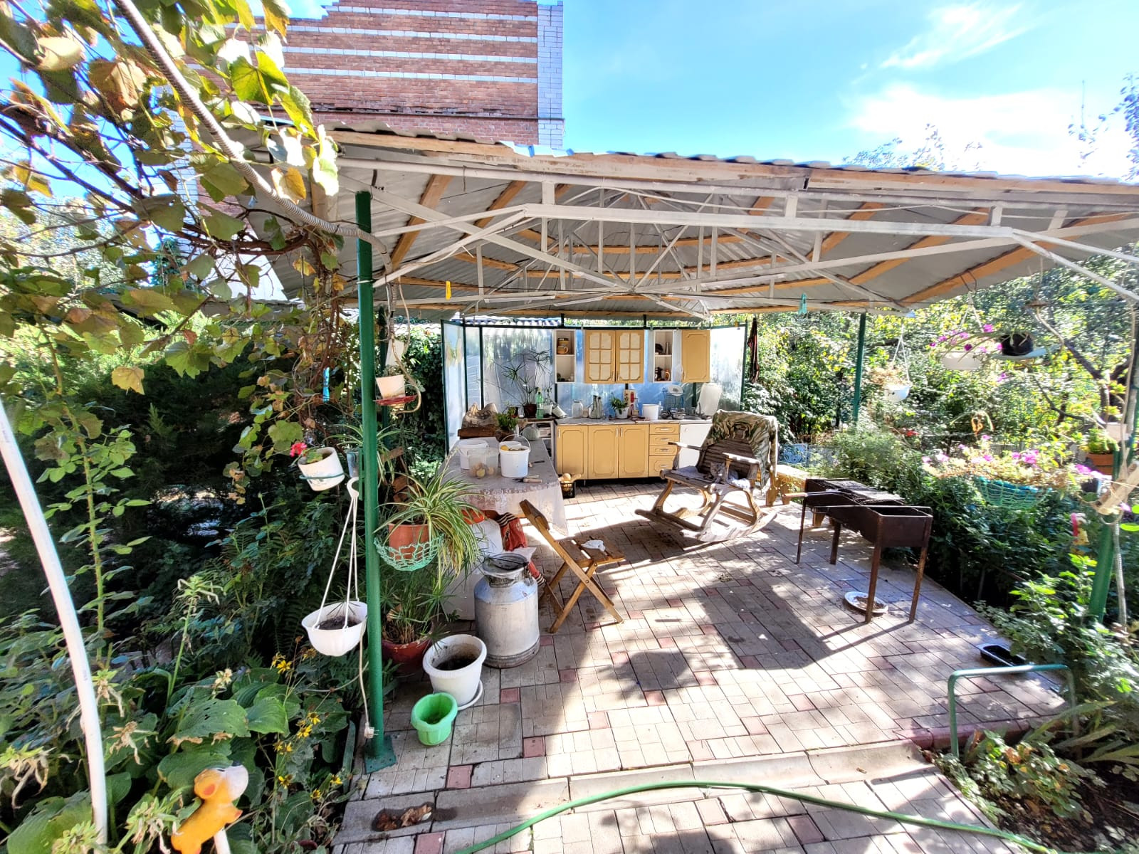В доме есть все  о чем можно только мечтать . Свой Сад , плодовые деревья , свое хозяйство ( куры) , много ягодных растений , зона барбекю , летний душ , летний туалет . Земля в 6 соток . 2 въезда в дом , один в гараж на 2 машины , другое во двор , также на 2 машины .