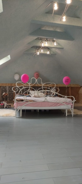 На 2-ом-спальня мансарда 40 кв. с 3-мя окнами FAKRO с пожизненной гарантией, полы паркет, и уютная кованая кровать (делали на заказ) с ортопедическим матрасом.