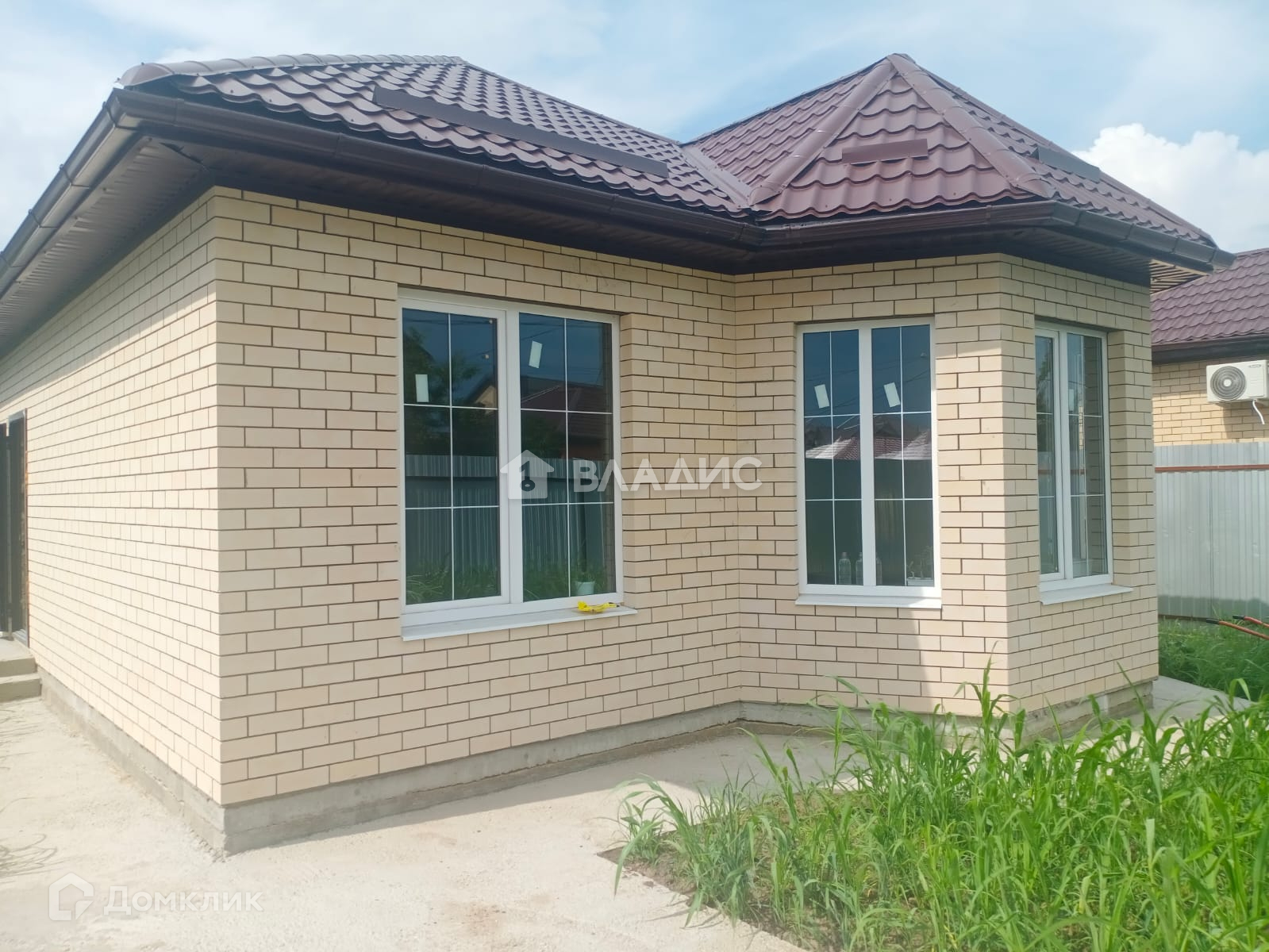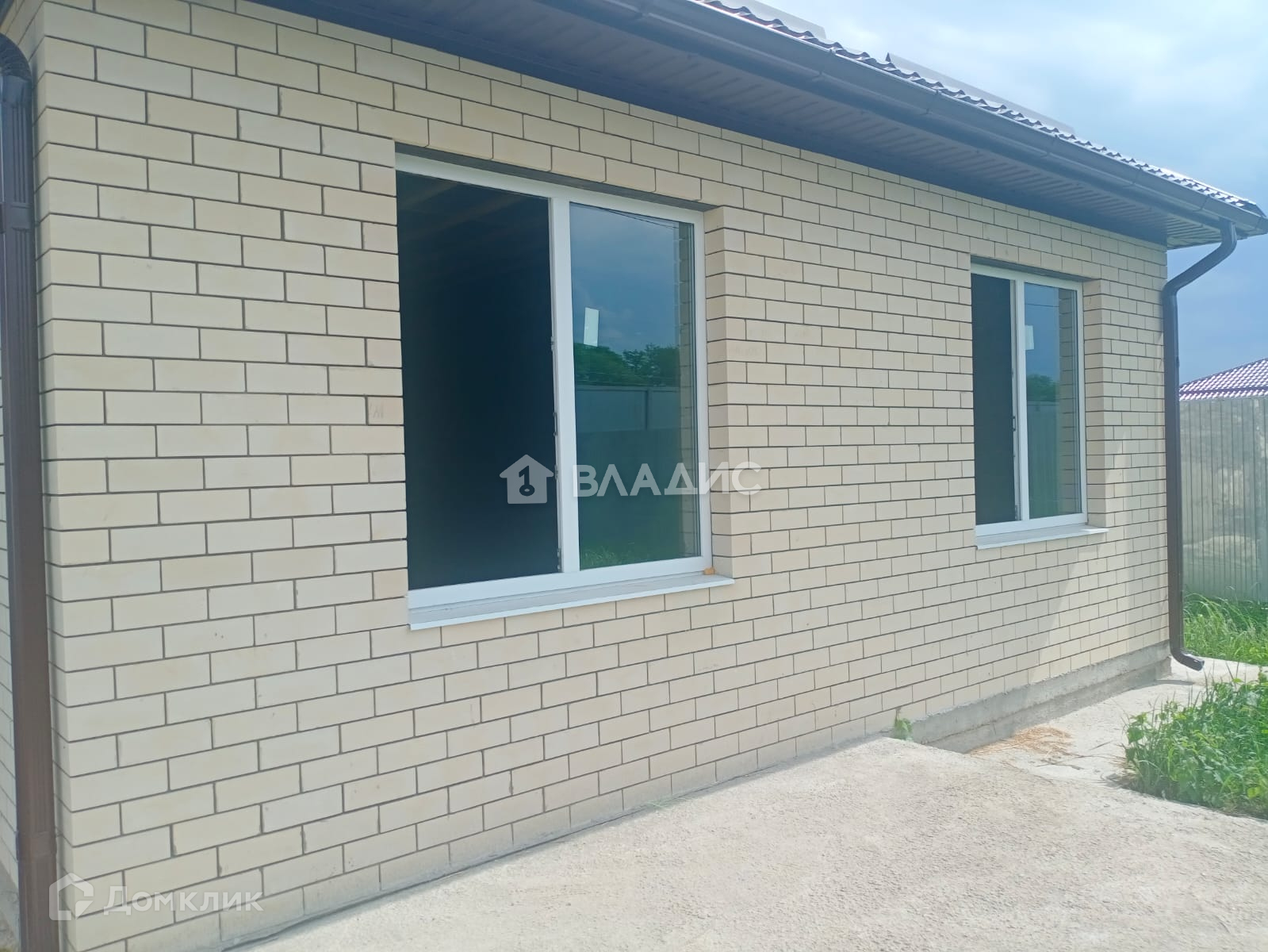 Дом блочный, облицован керамическим кирпичом.