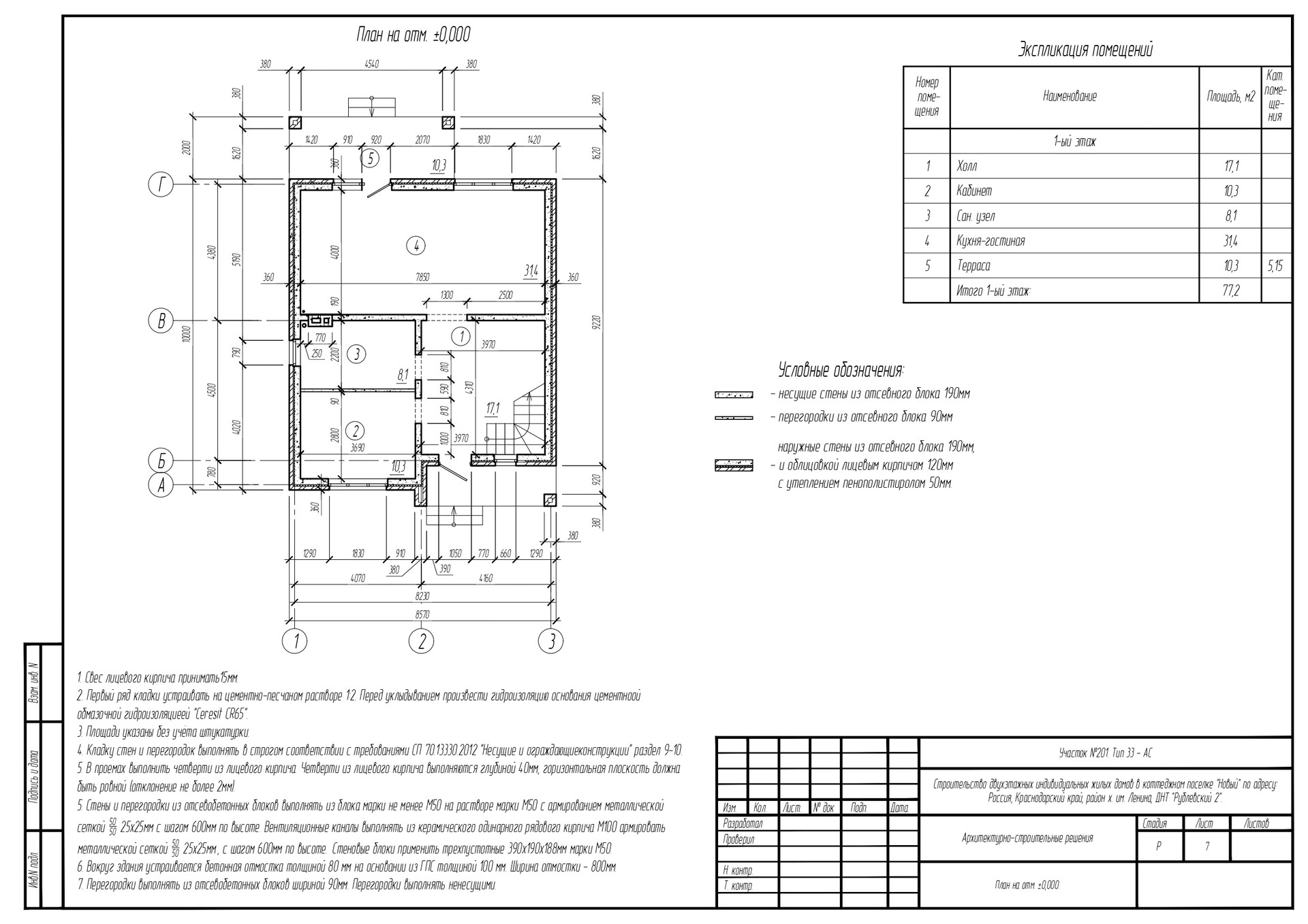 Дом надёжный, построен из качественных материалов. Стены трёхслойное из отсевного блока, утеплителя и керамического кирпича.  Кровля вальмовая на деревянном каркасе с покрытием из метало черепицы.