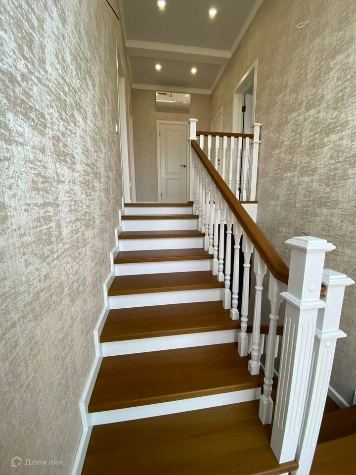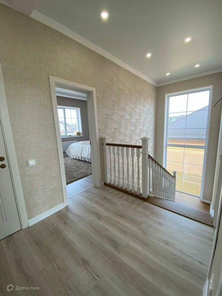 В доме выполнен качественный ремонт в светлых тонах, натяжные потолки с точечным освящением, теплые полы по всей площади первого этажа, лестница массив дуба.