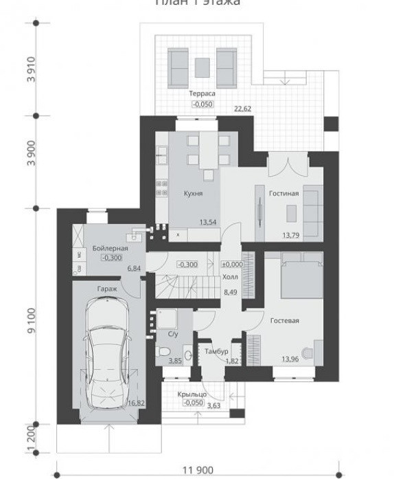Размеры дома  13 x 11,9 м