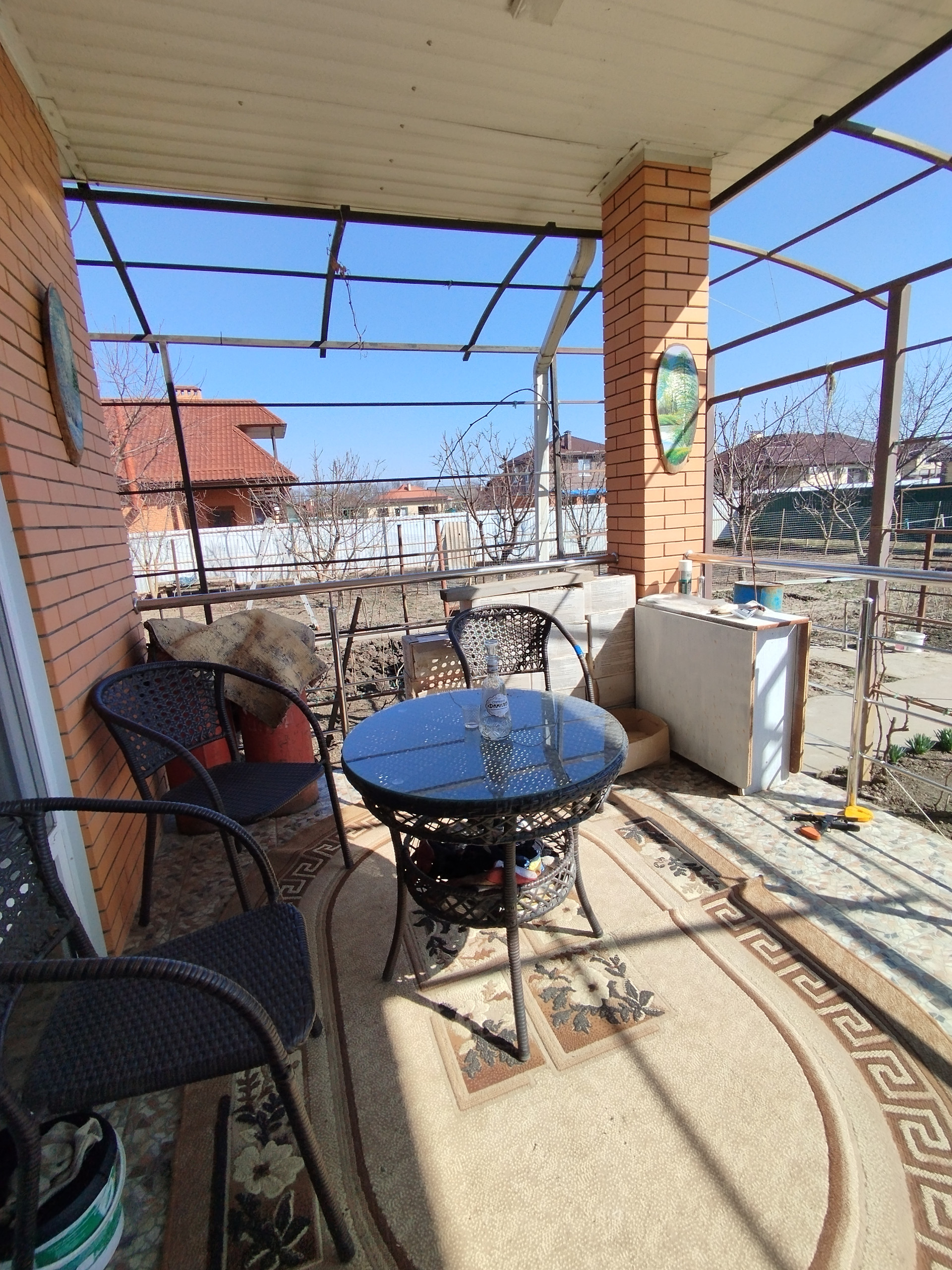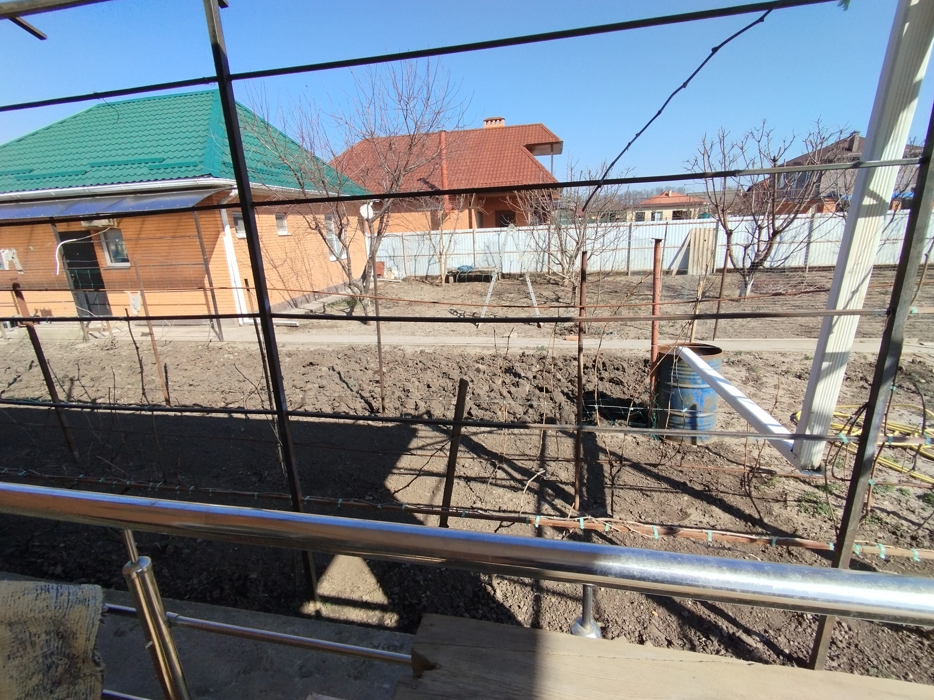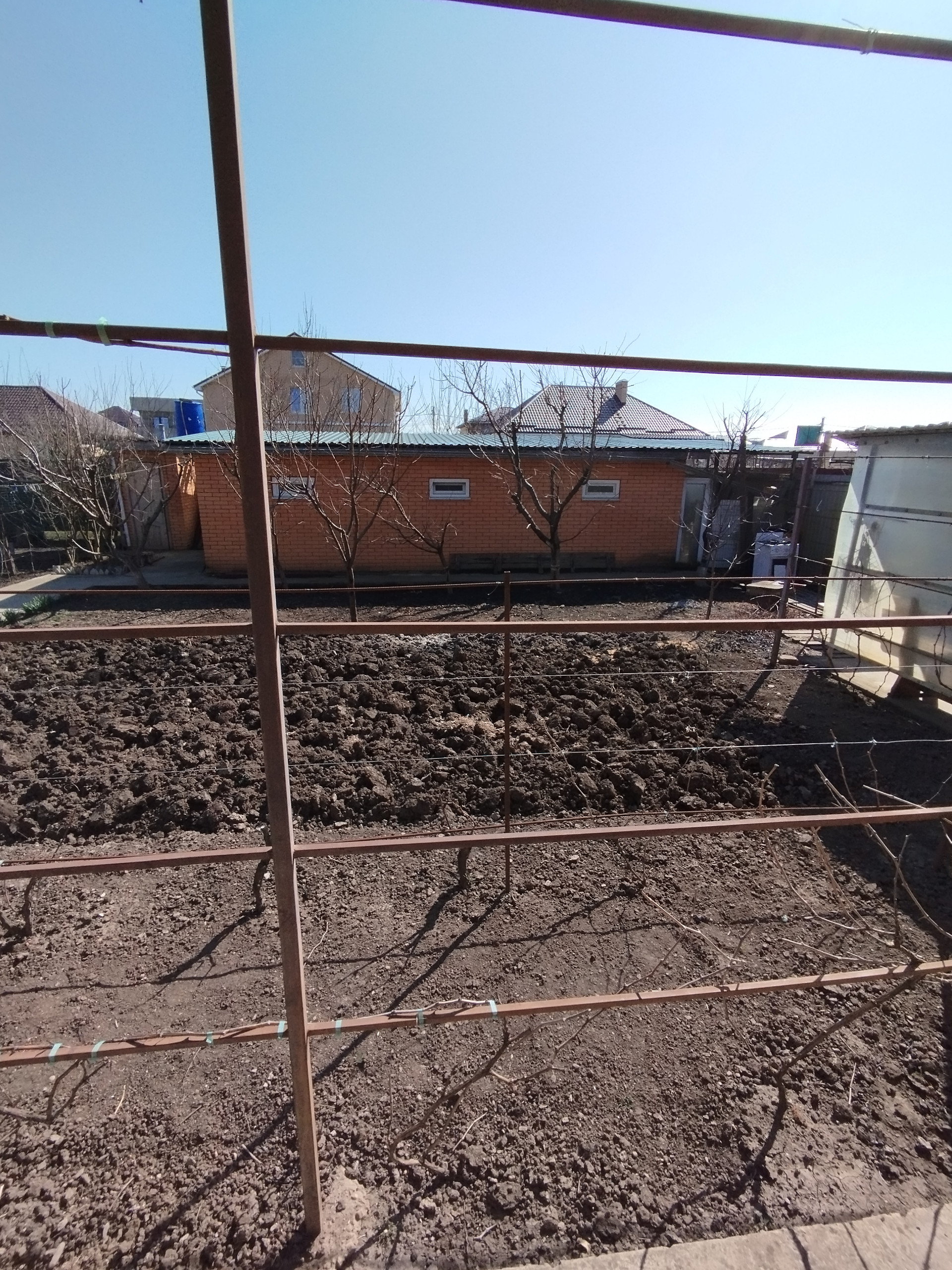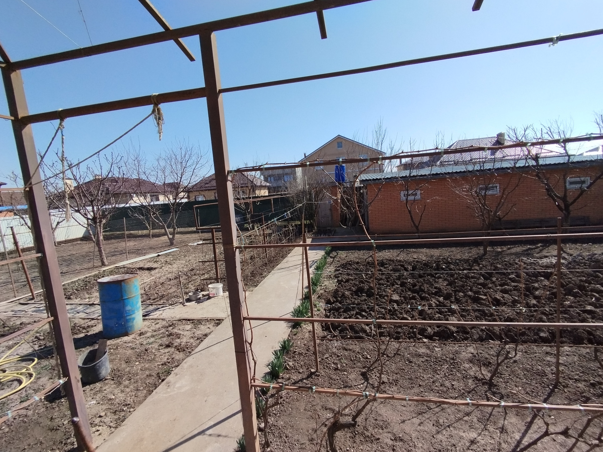 На участке растут плодовые деревья: персики, вишня, инжир, фундук. Есть малина, виноград