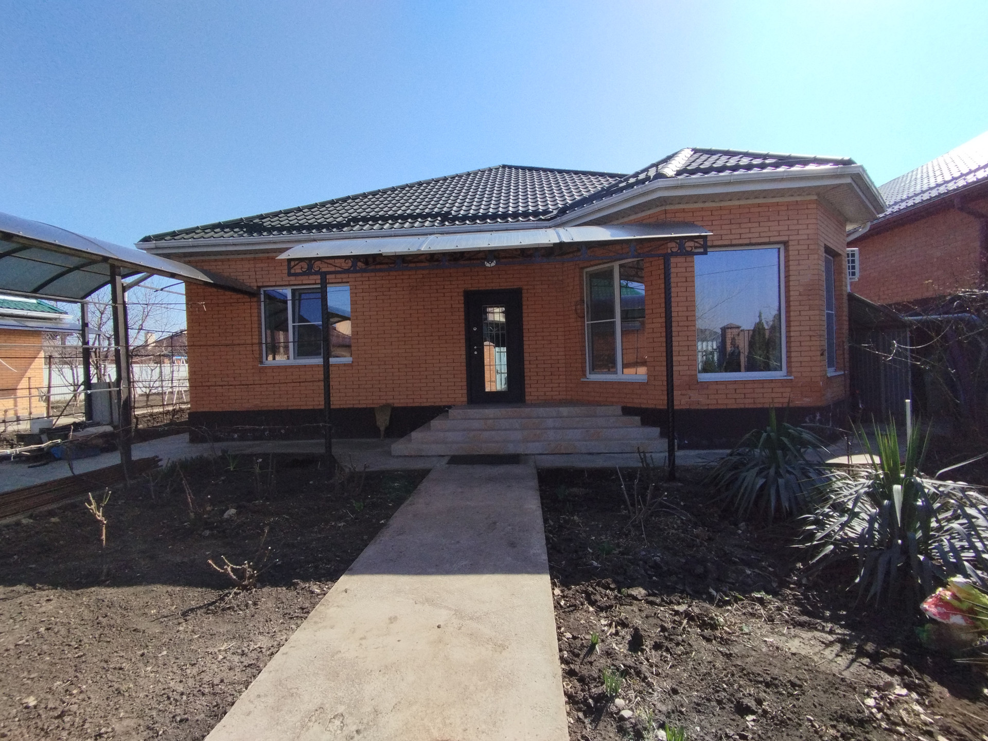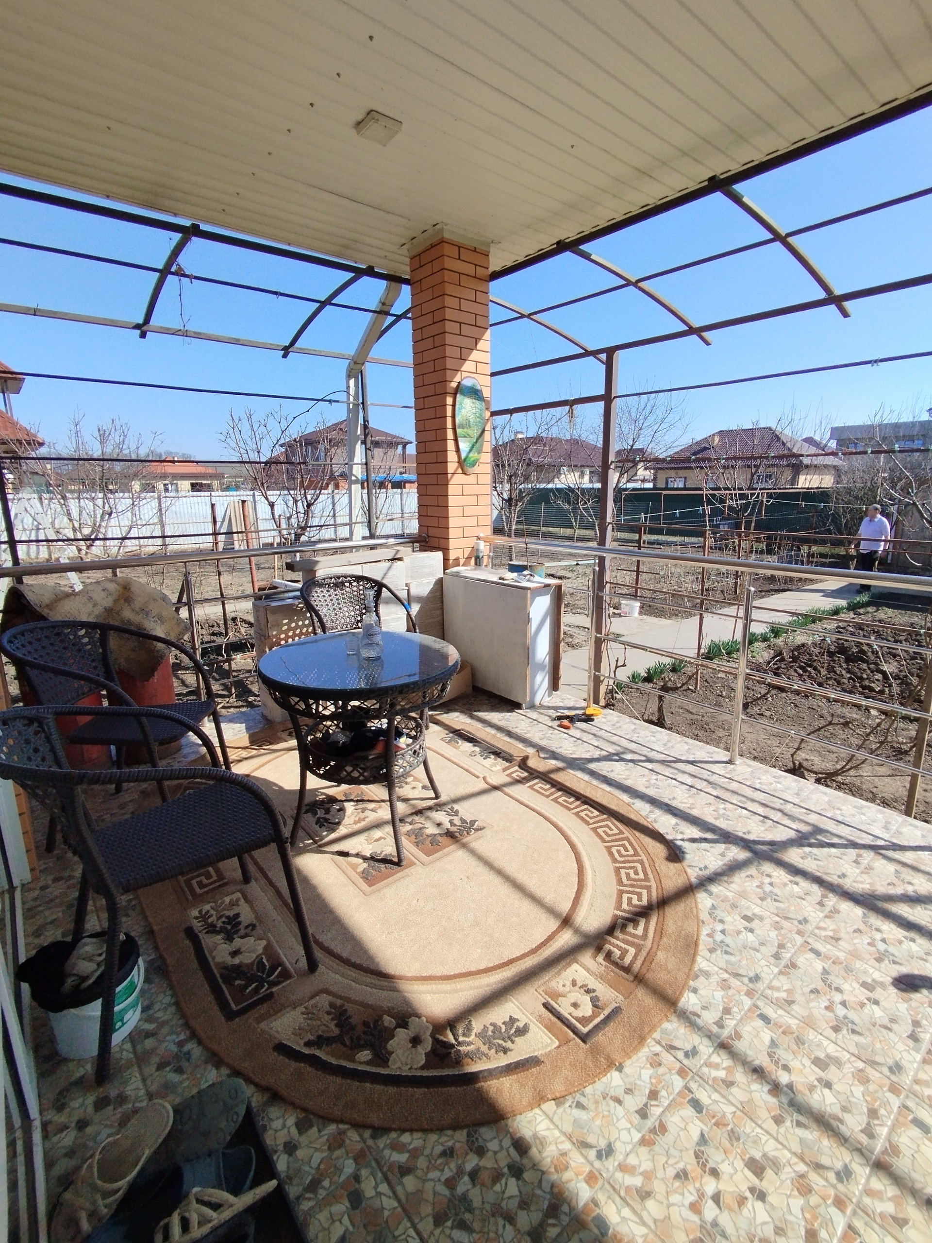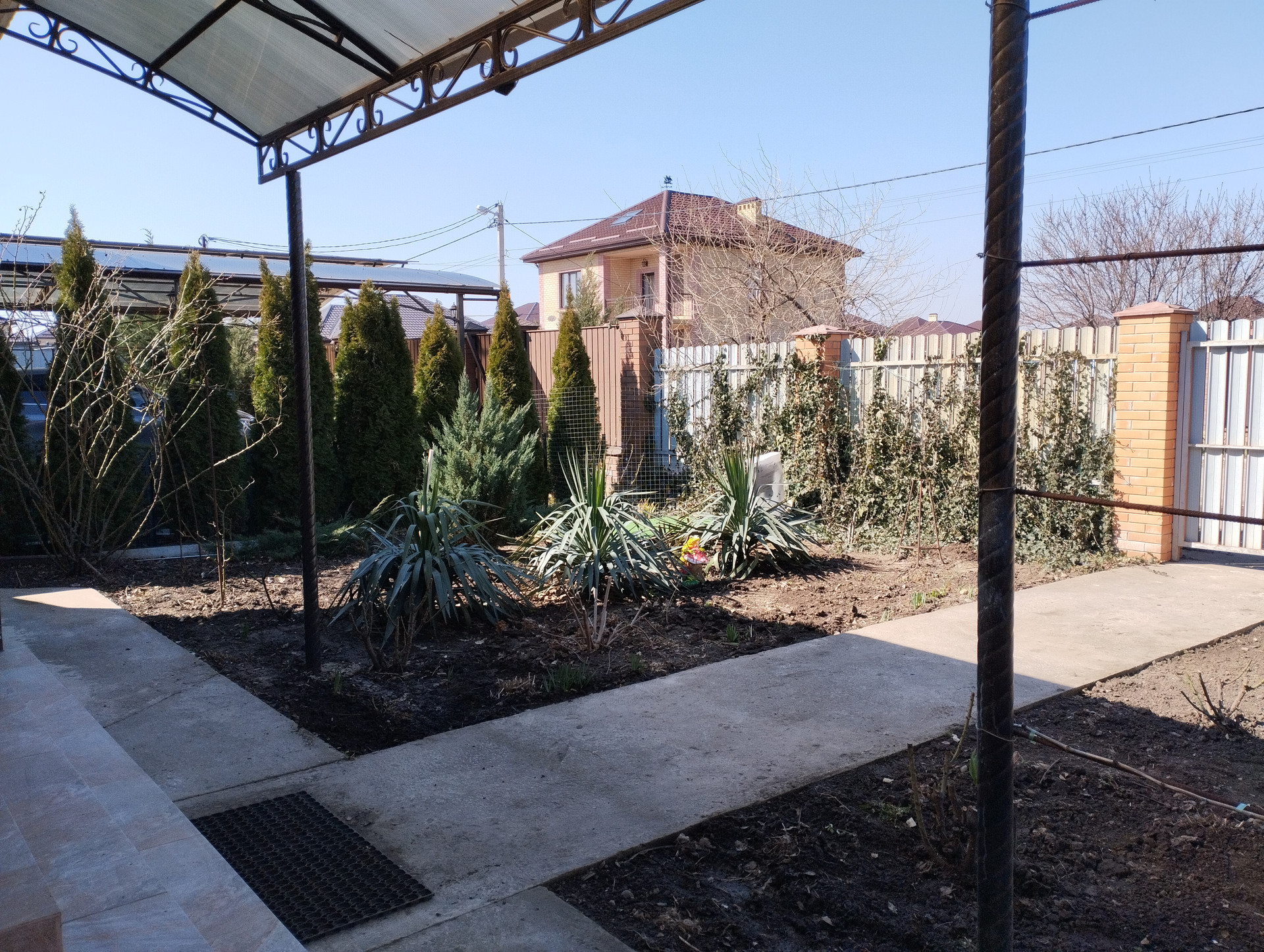 На участке растут плодовые деревья: персики, вишня, инжир, фундук. Есть малина, виноград