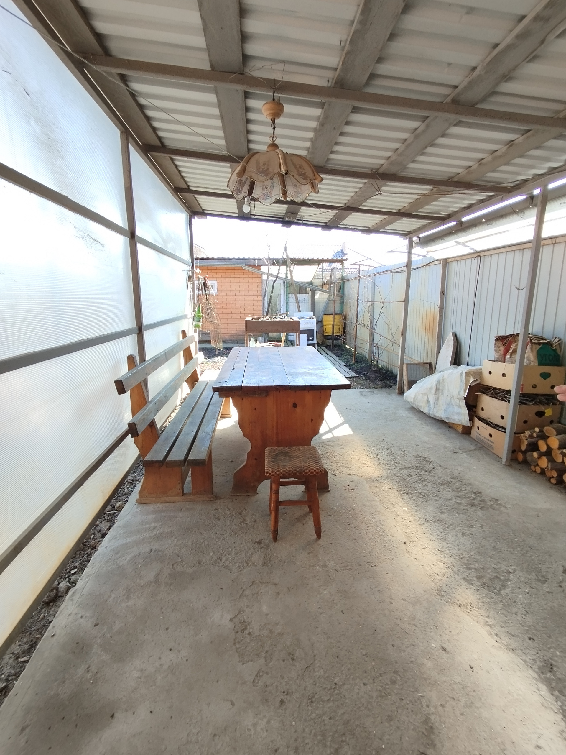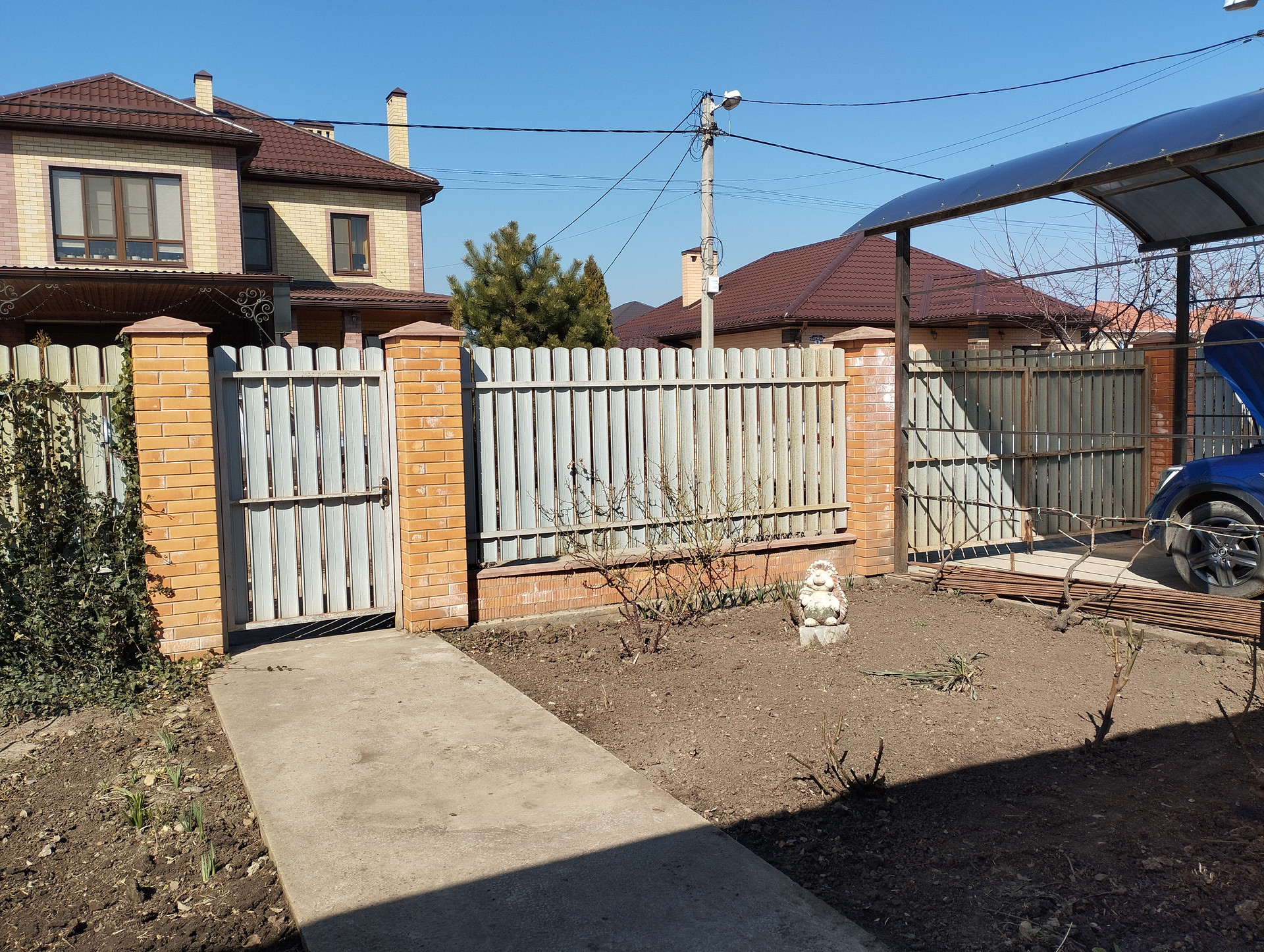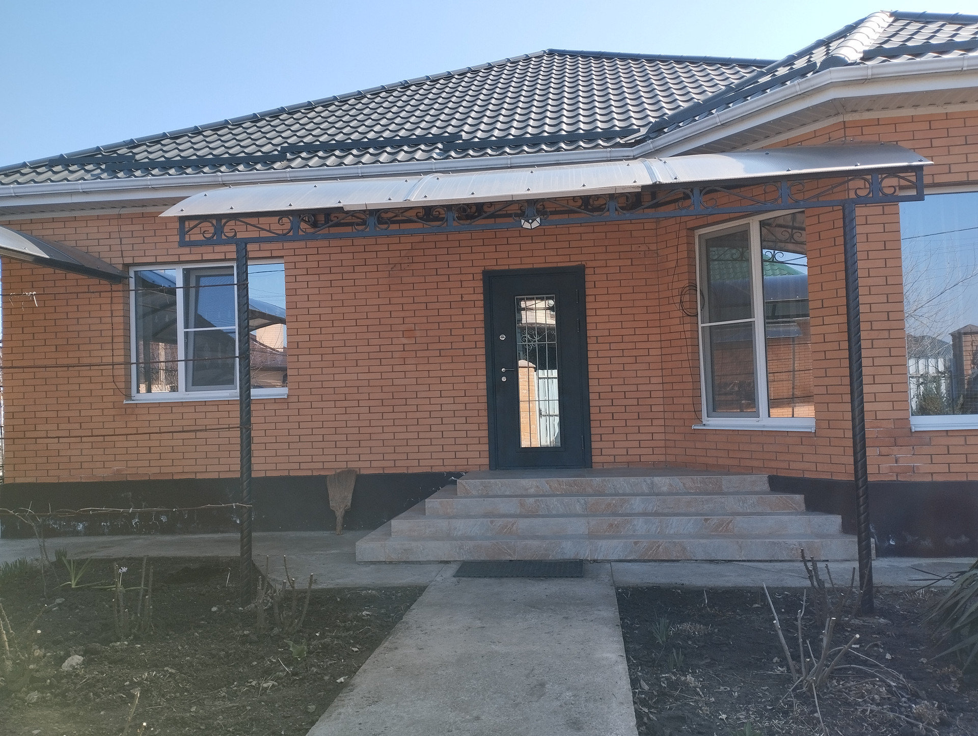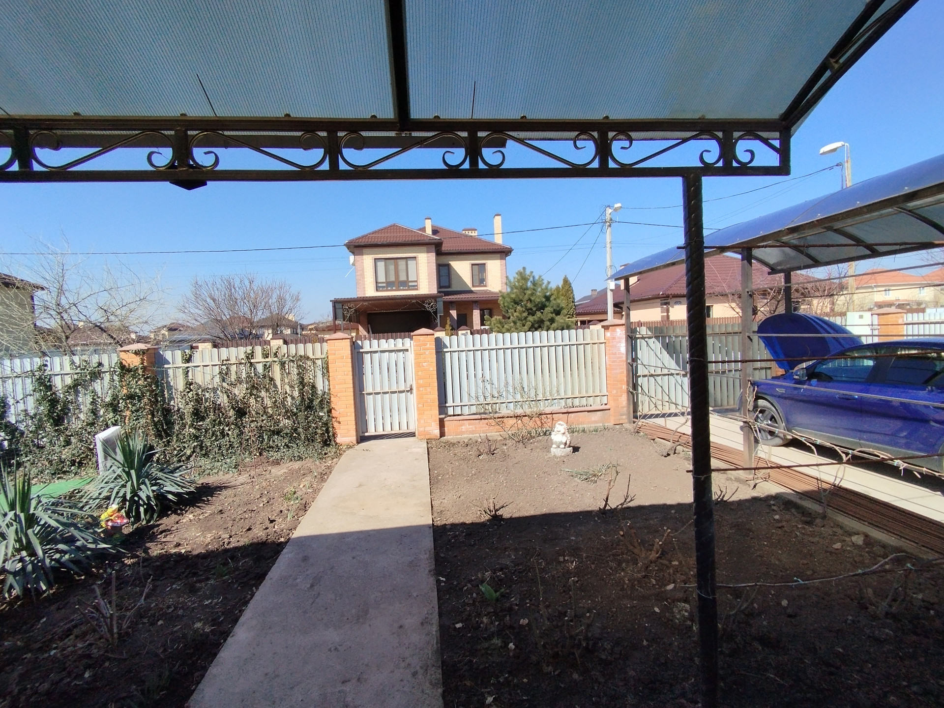 На участке растут плодовые деревья: персики, вишня, инжир, фундук. Есть малина, виноград