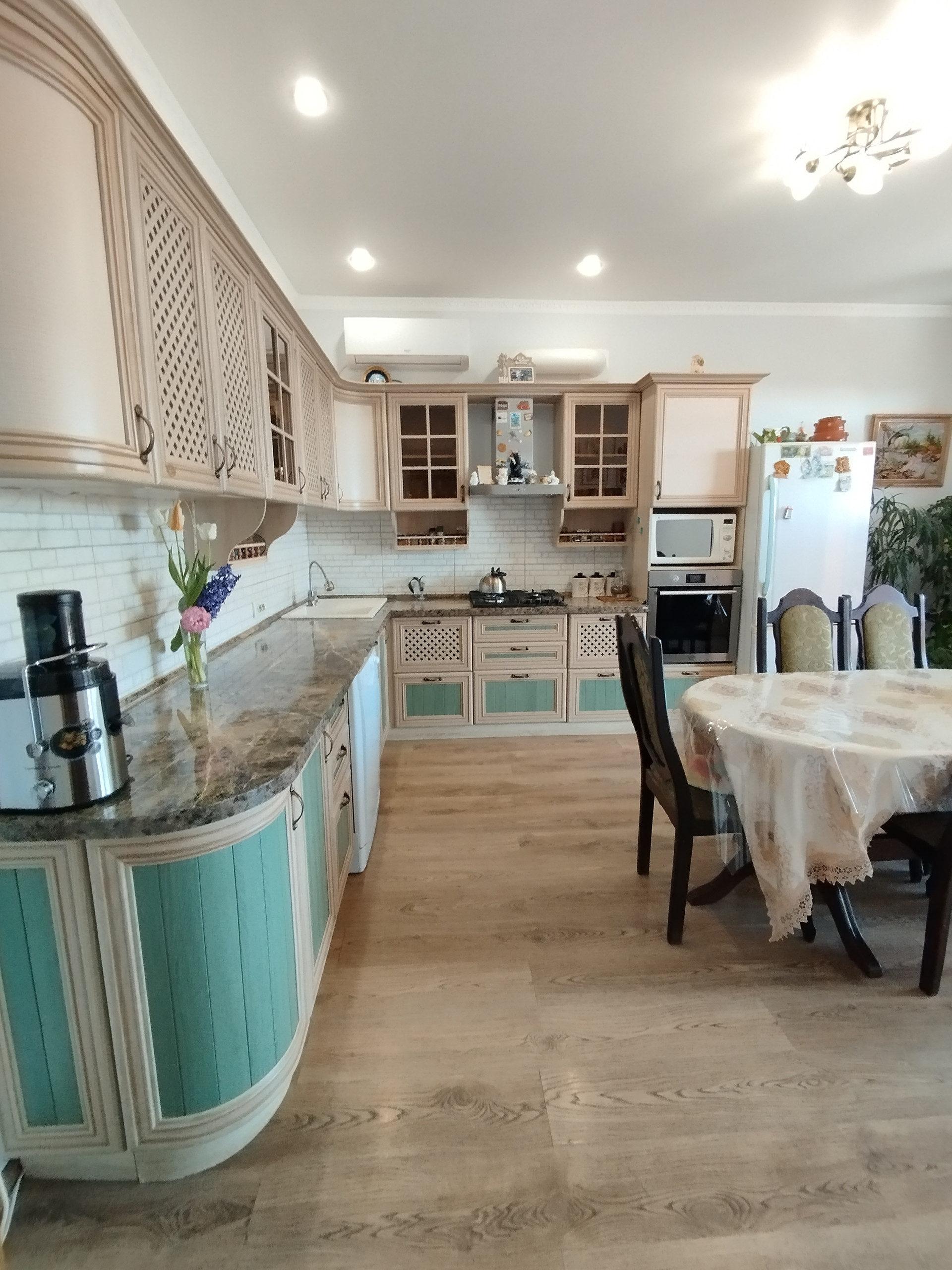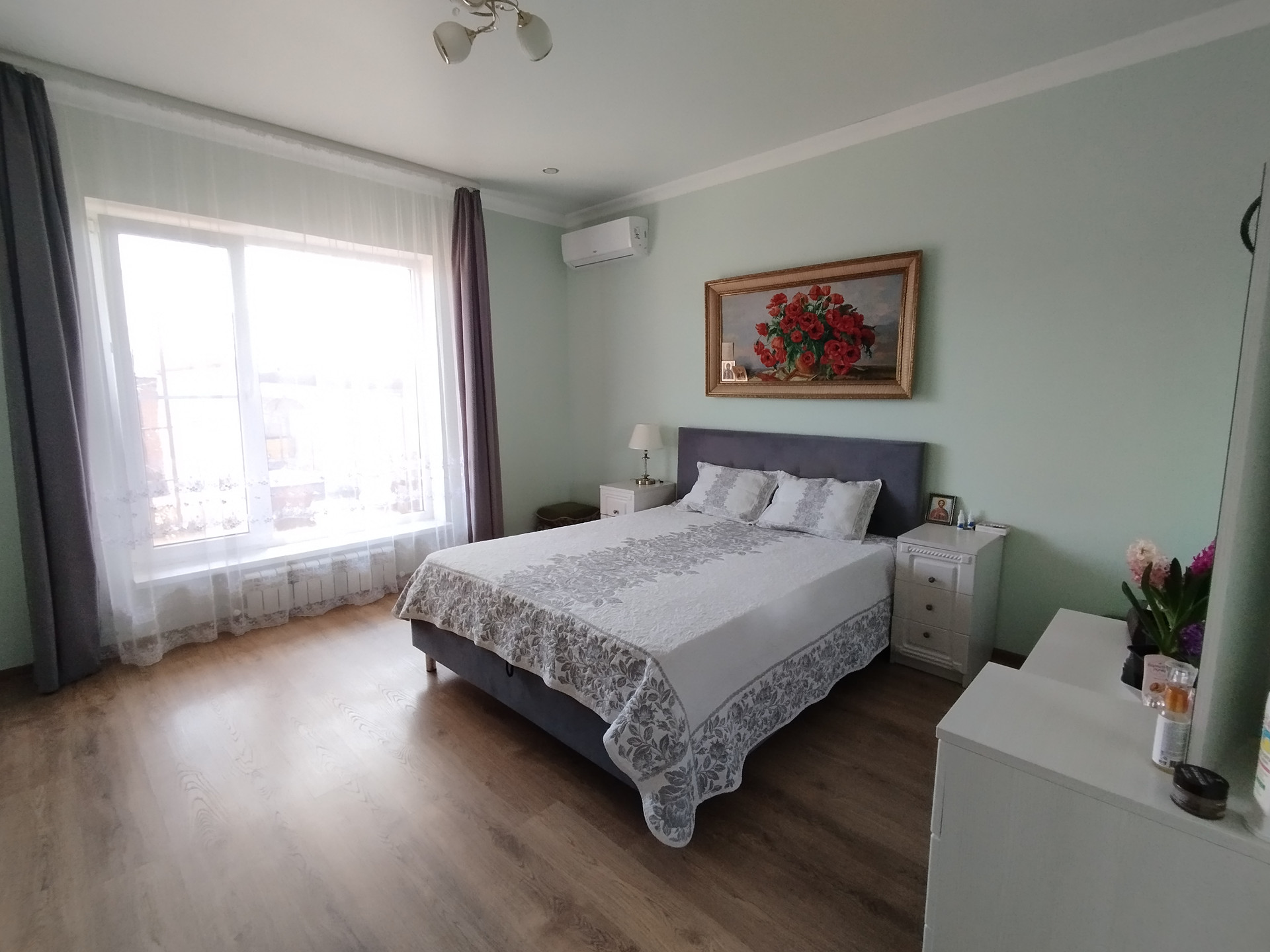 Дом находится в ДНТ Виктория, х. Ленина. До Краснодара 10 км. Продаем дом в связи с переездом. Строили для себя и на совесть. Три спальни, кухня-столовая, гардеробная, терраса, подвал, мангальная зона, котельная. Курятник. Газ проведут осенью 2024 года. Отопление: везде электрические теплые полы, радиаторы, сплит-системы во всех комнатах и можно отапливать твердым топливом.  Коммуникации центральные. Интернет (два провайдера подключены). Спутниковое ТВ. Подвал всегда сухой.