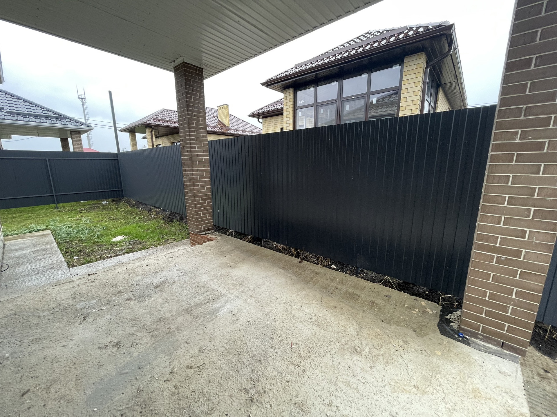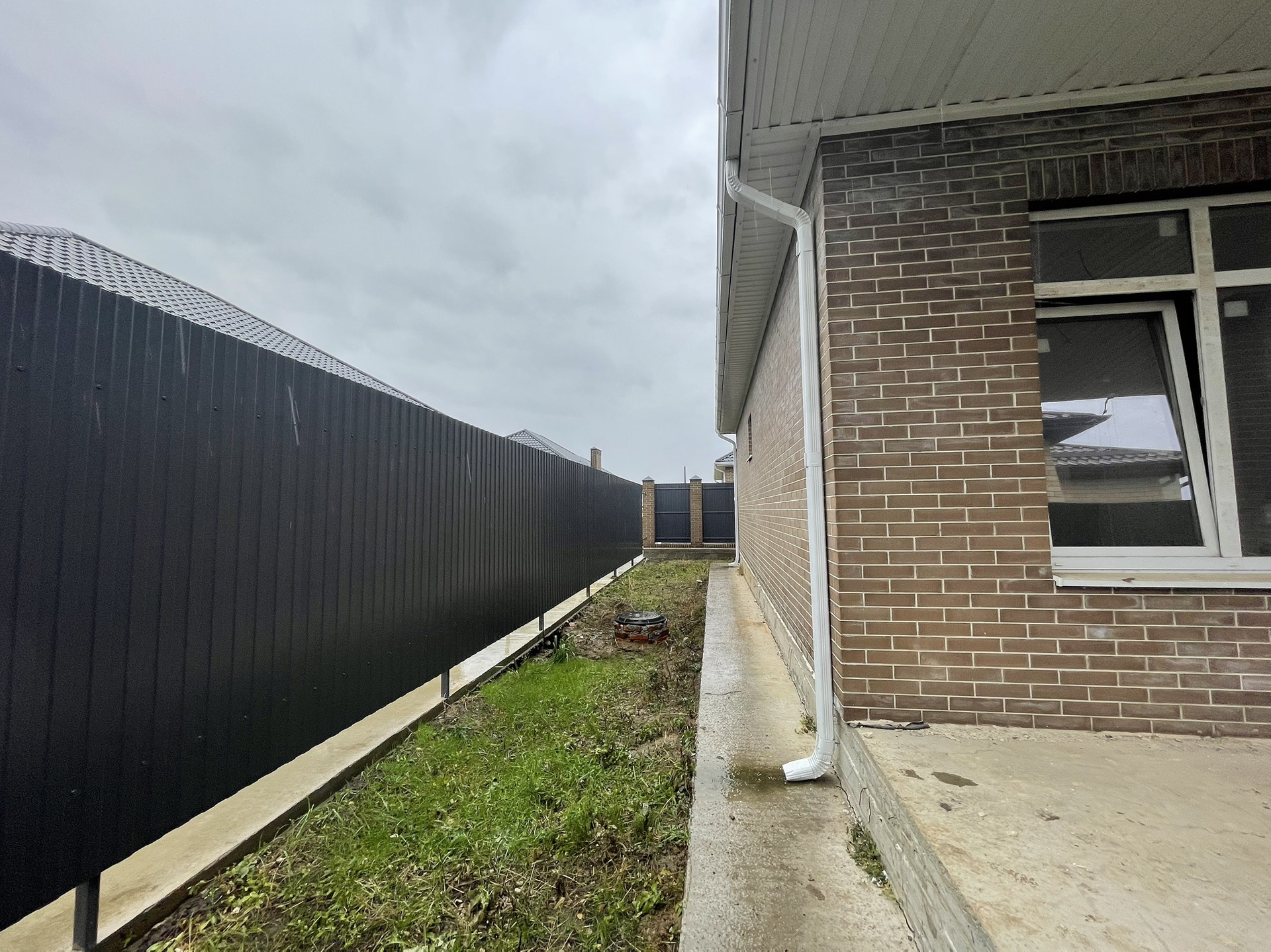 Участок благоустроен: выравнен, приподнят, подсыпан чернозем. Залита армированная плита под парковку автомобиля, сделана широкая отмостка вокруг дома, армированный фундамент под забором с колоннами.