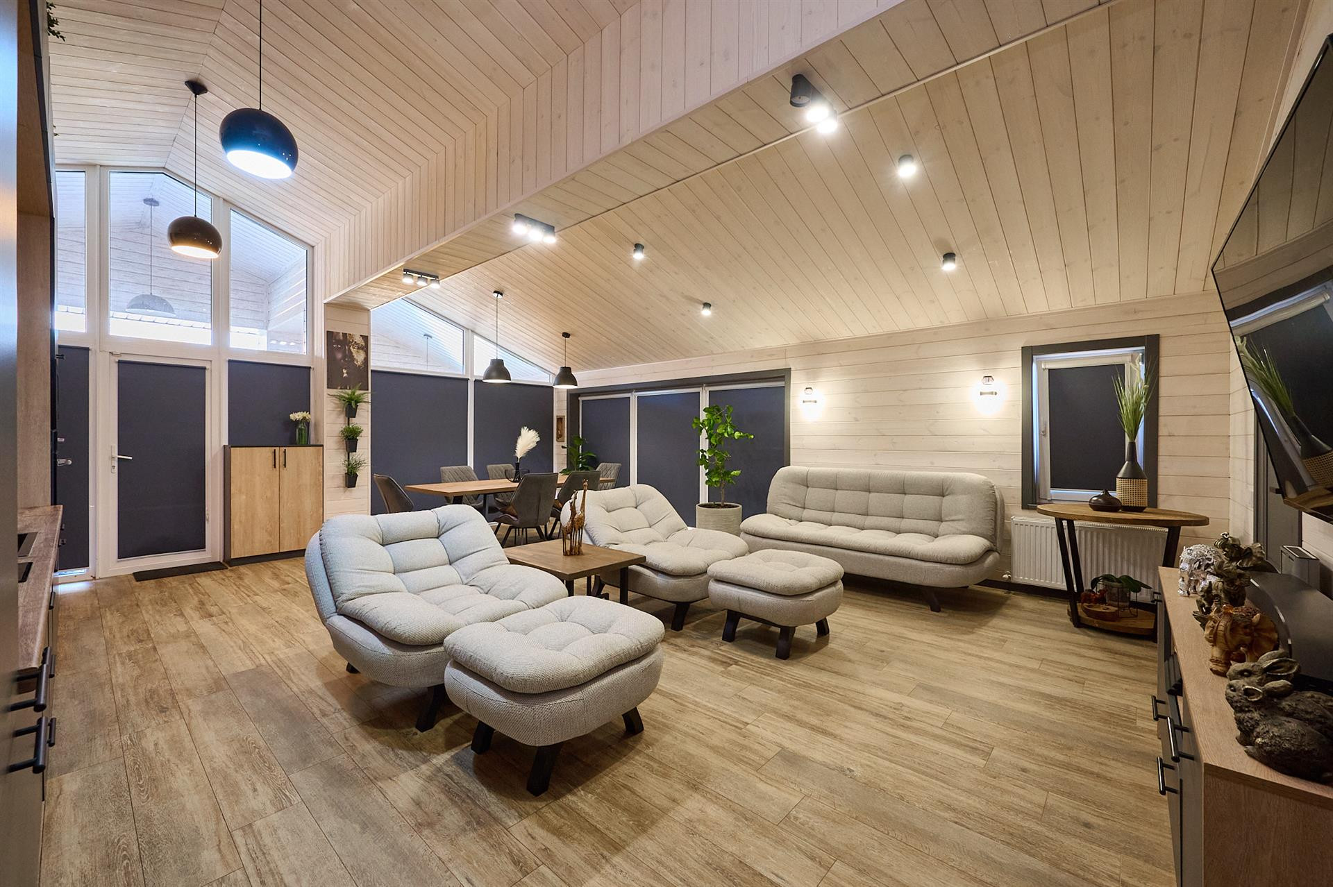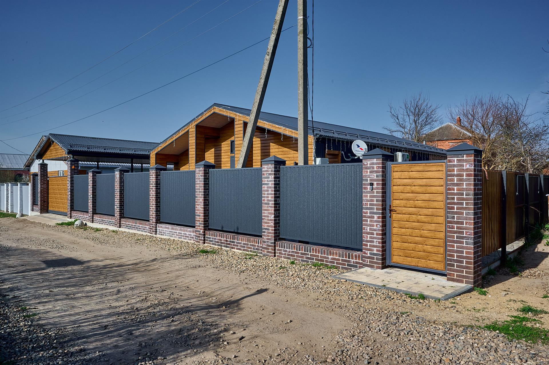 В доме имеется охранная система, электрические ворота ,теплый пол по всему дому, внутренняя отделка натуральное дерево столы так же из натурального дерева.