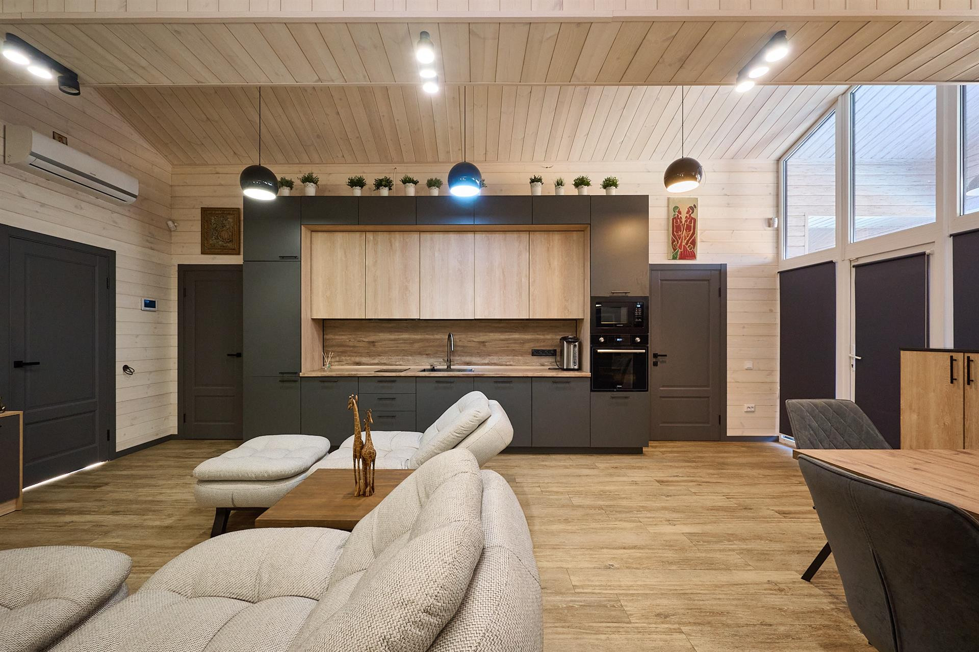 Строительство производилось из монолитной конструкции и газоблока(постройка в стиле BARN HOUSE)