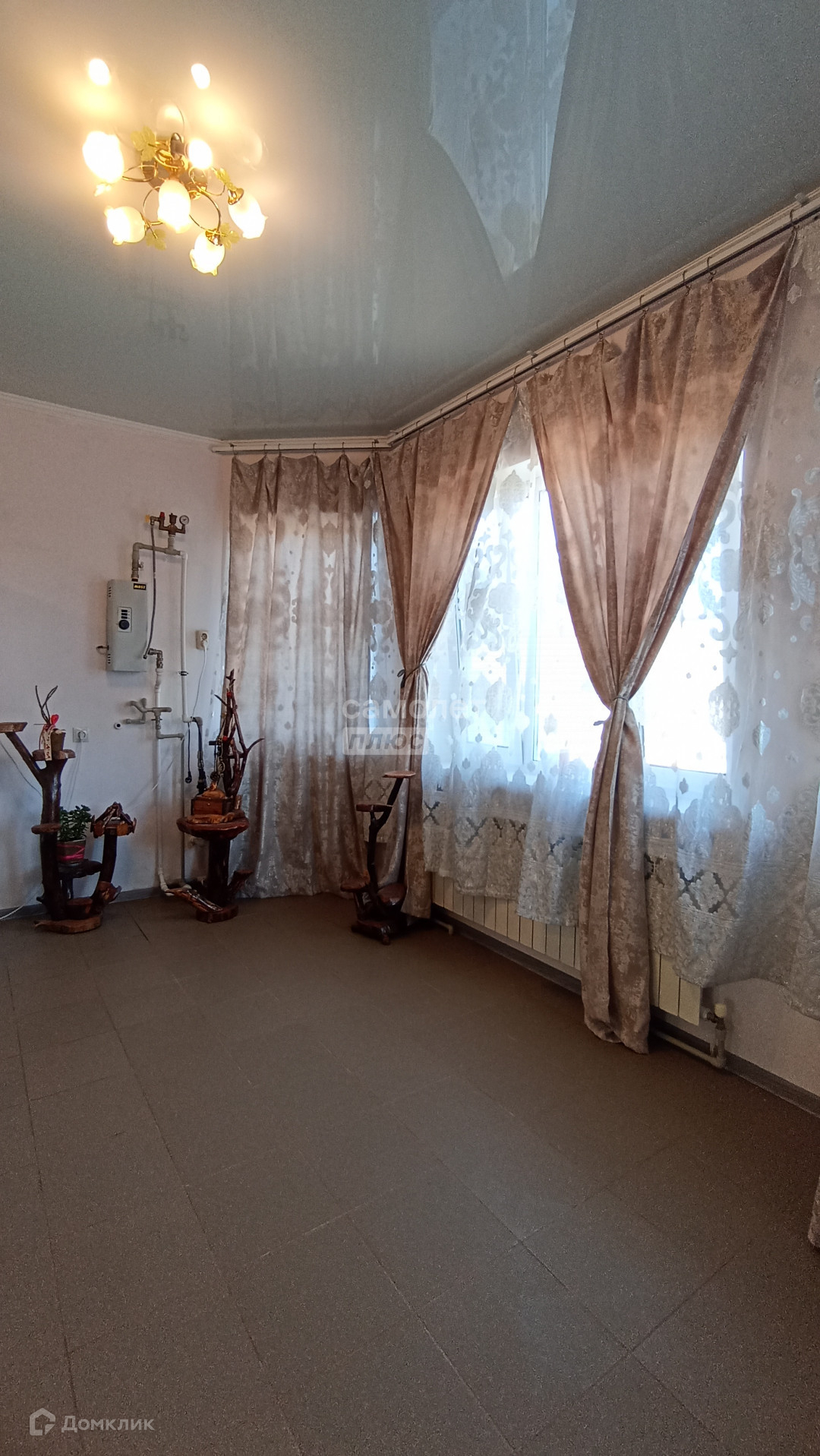 В доме 2 изолированные комнаты,просторная гостиная,большой санузел,кафель,плитка,натяжные потолки, ,бойлер,сантехника,радиаторы,электрокотел,триколор ТВ,вневедомственная охрана .