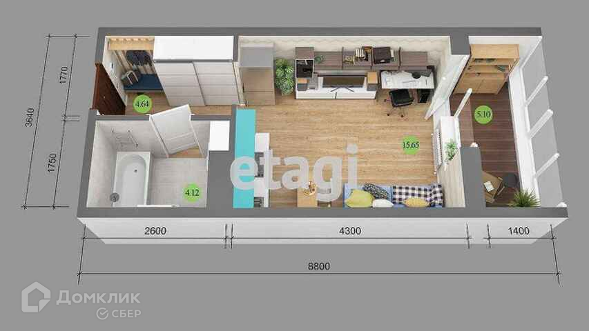 Общая площадь 24.9 м2