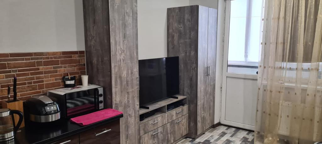 Продам квартиру-студию с ремонтом и мебелью в микрорайоне хутор Ленина. Квартира расположена на среднем этаже пятиэтажного кирпичного дома.