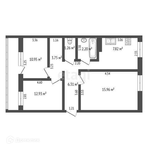 Общая площадь 61.7 м2