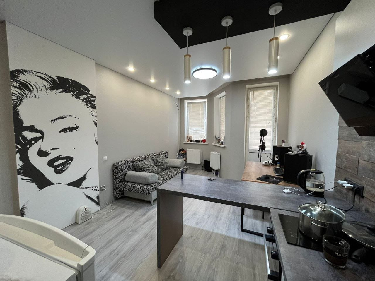 Все что вы видите на фото остаётся новому хозяину. Студия без обременений. Документы готовы к продаже .