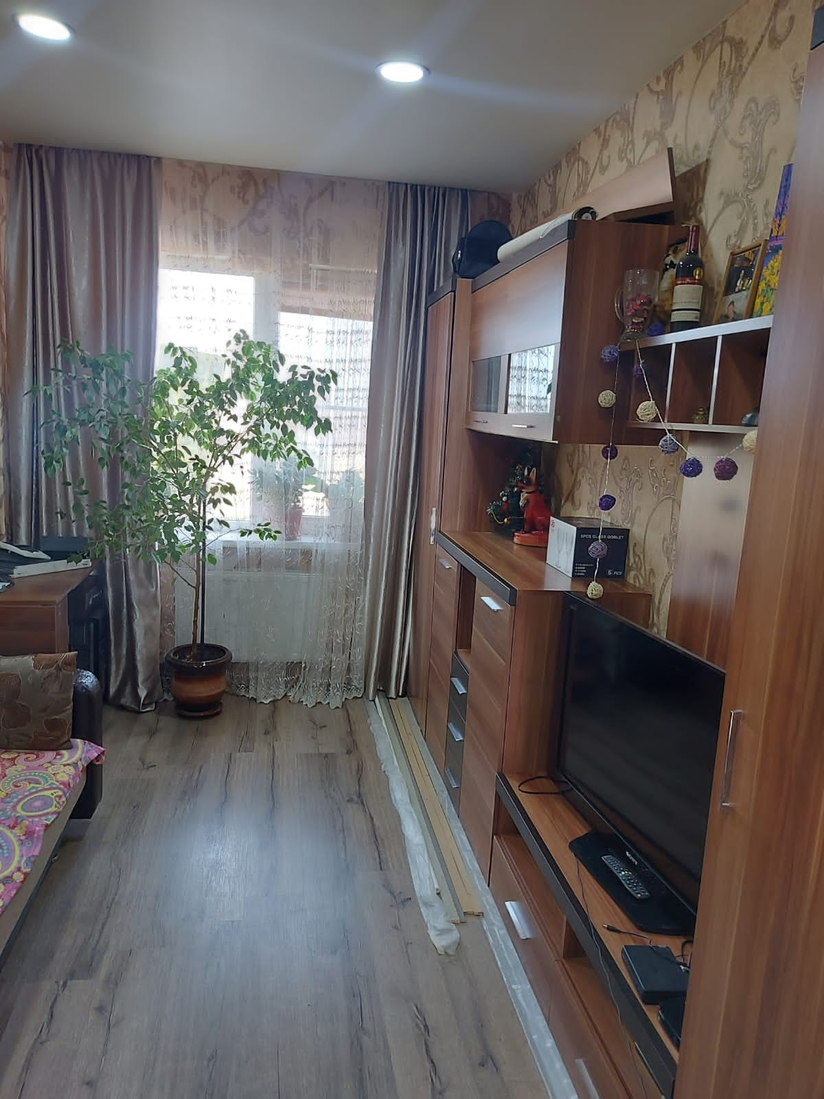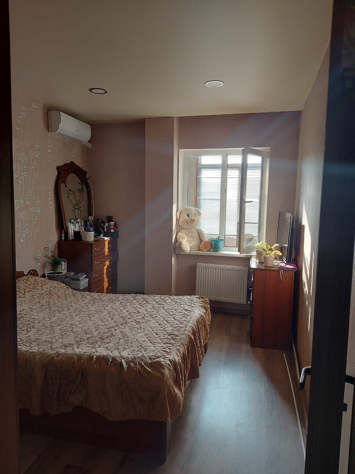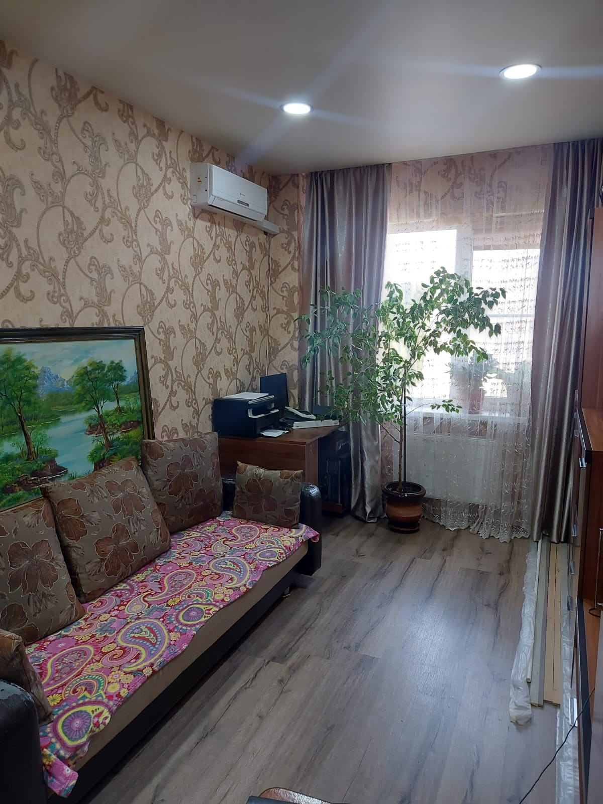 2ух комнатная квартира на 4 этаже 4ех эт.дома. Окна выходят на две стороны дома. Большой балкон. 3 сплит системы, тёплый пол в кухонной комнате. Вся инфраструктура имеется. Автобусная остановка возле дома, детей в школу возит и привозит  домой бесплатно. Красивый вид во двор и на Церковь сзади дома. Хорошо развитый район. Тихо, спокойно и свежий воздух. 10 минут до ТЦ Оз Молл на машине и 40 минут на автобусе.