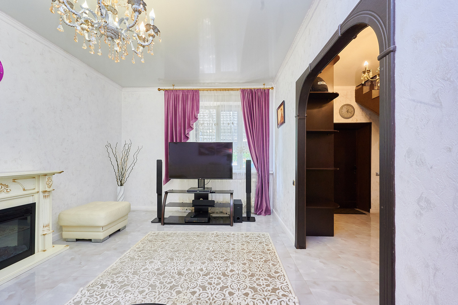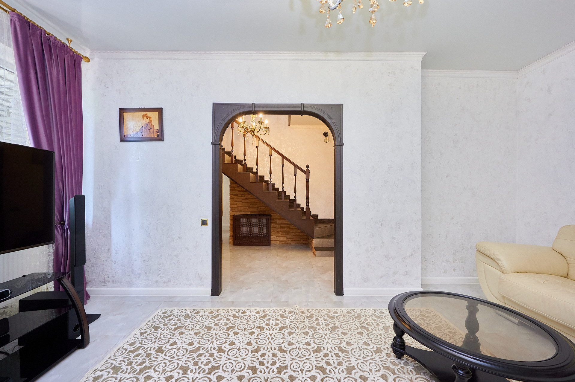 На первом этаже кухня- гостиная 16 м2 и гостиная - место встречи всей семьи.