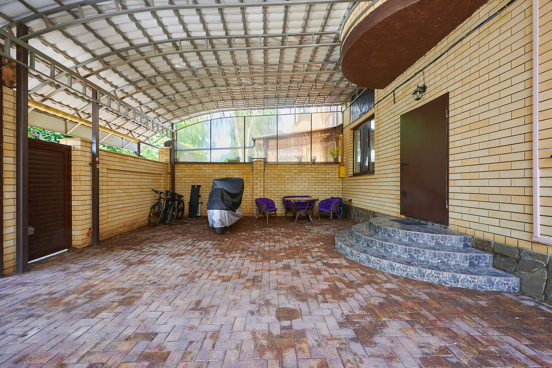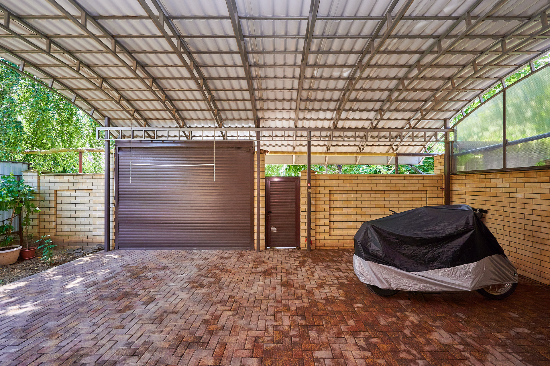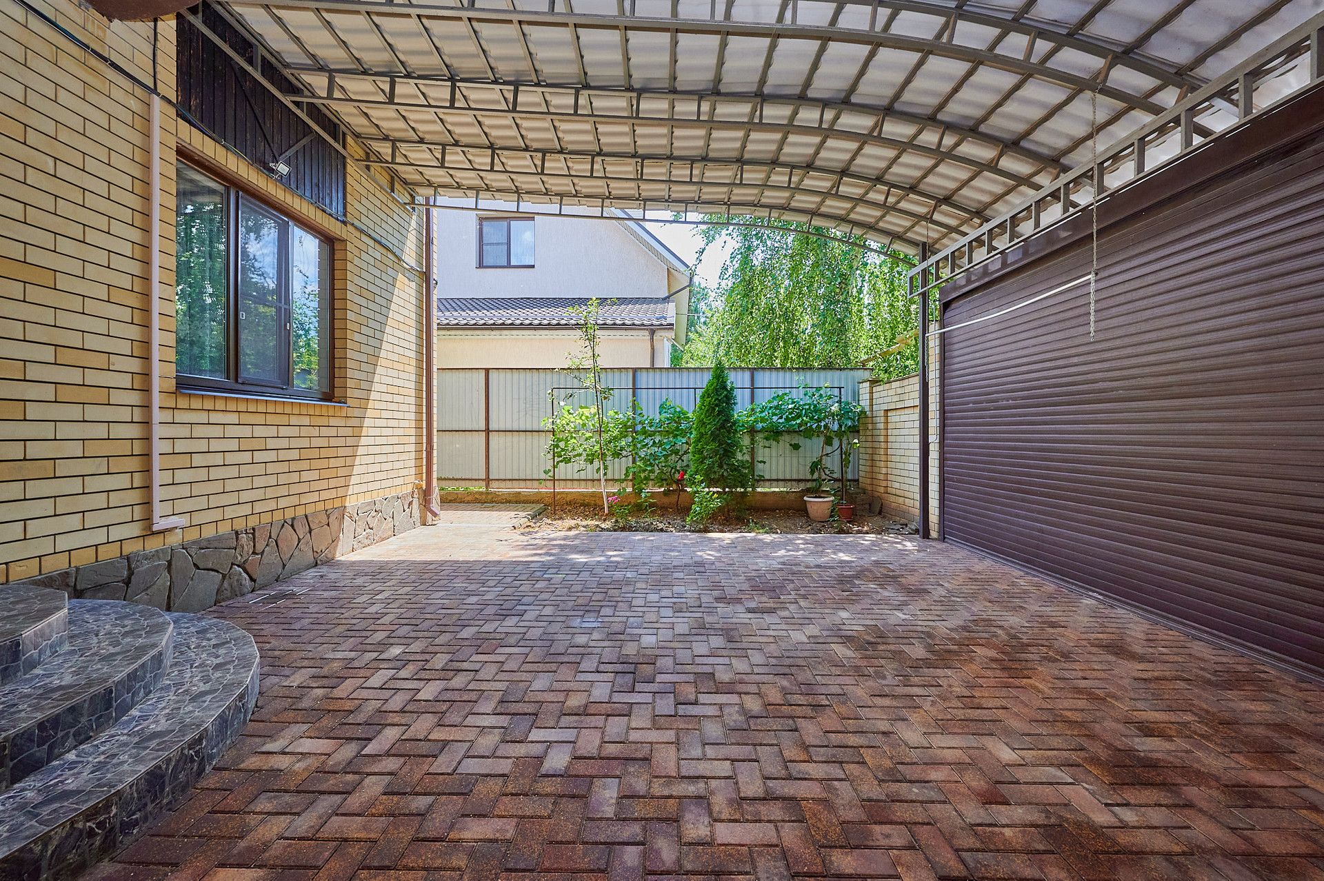 Двор с капитальным навесом место отдыха, парковки автомобиля. Въезд во двор с пульта.