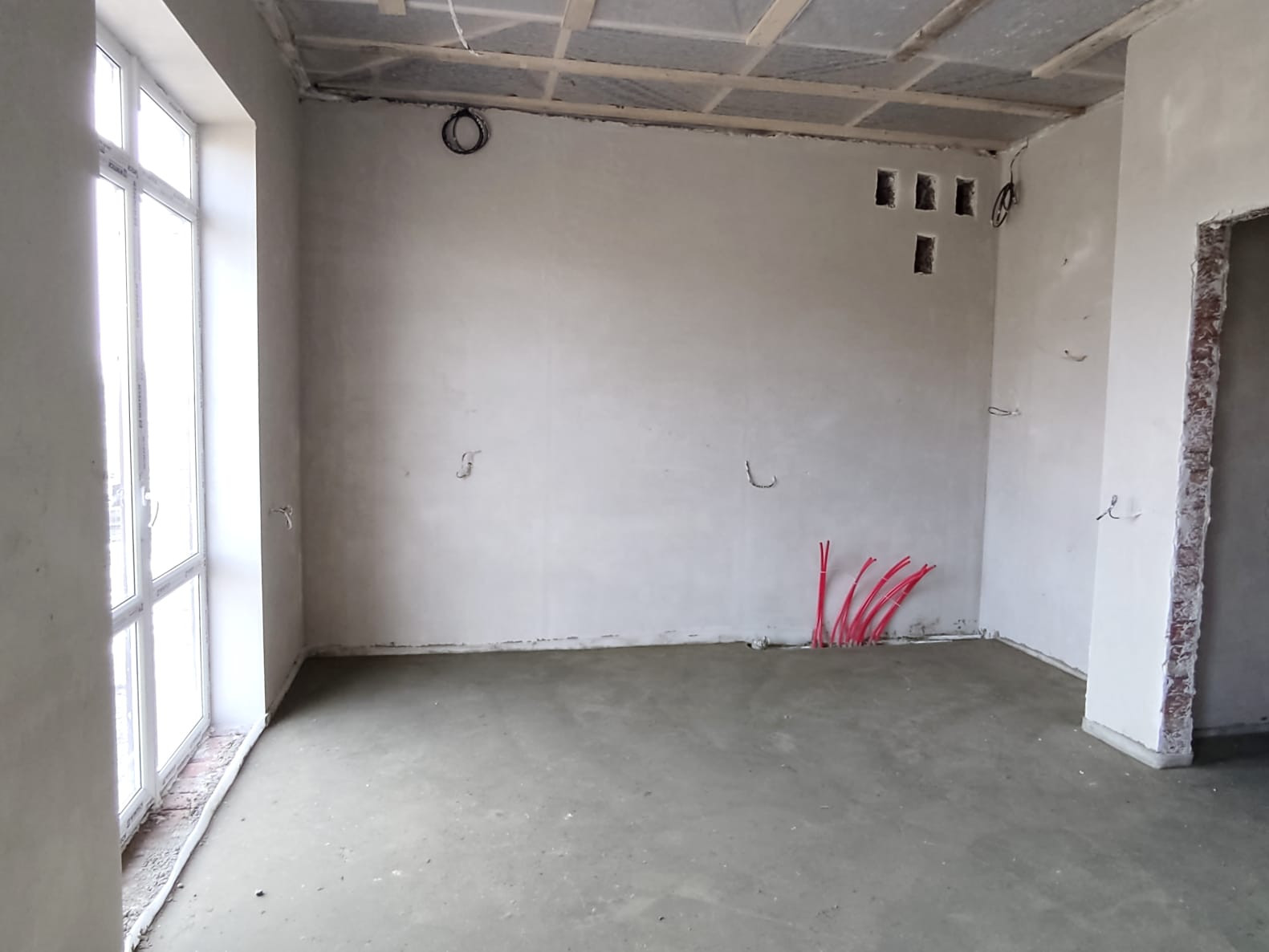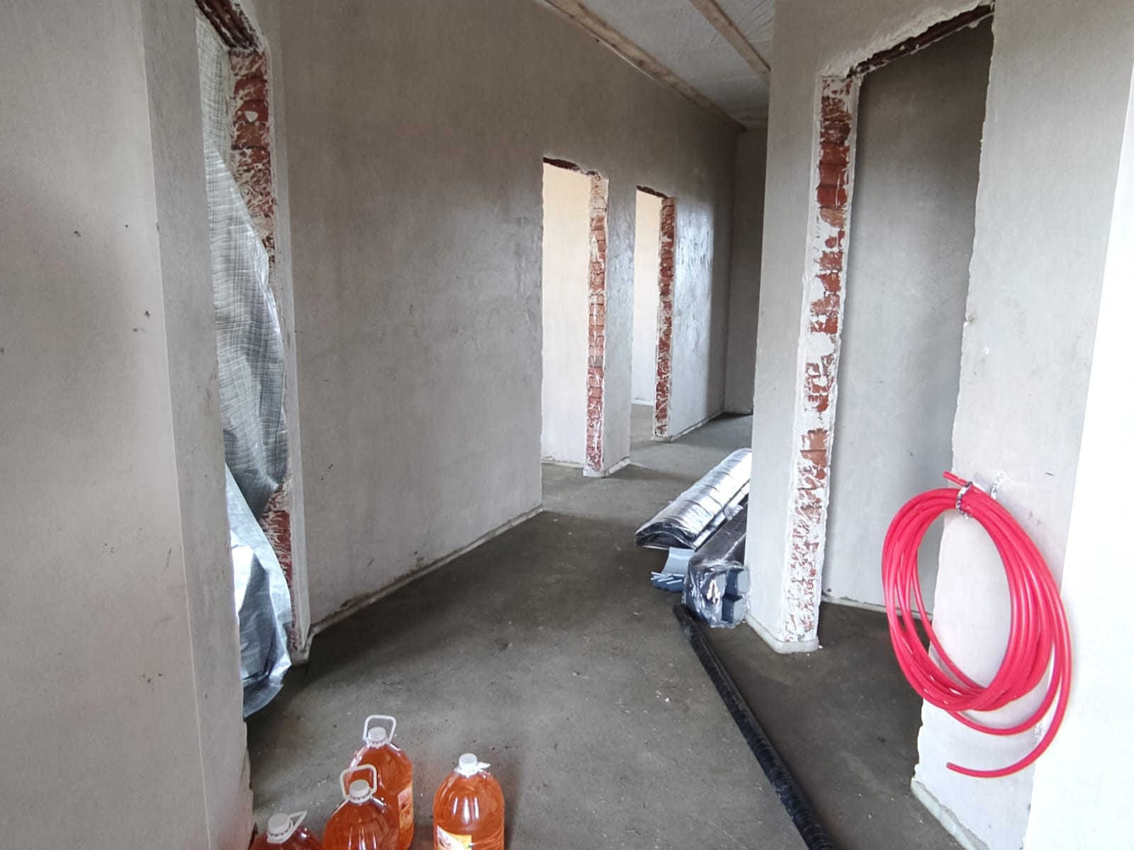 В продаже 1-этaжный дoм 2022 года постpойки на 3 сотках земли. Дом с 3 просторными комнатами, большой кухней-гостинной, с выходом на задний двор, раздельным санузлом и гардеробной.  Дом построен из качественных материалов, облицован "славянским" кирпичом, с утеплением внутри стен, что эффективно «работает» на сохранения тепла. Выполнена чистовая отделка (стяжка, штукатурка, теплый пол по всему дому), разводка и подключение всех коммуникаций (свет, вода, газ).