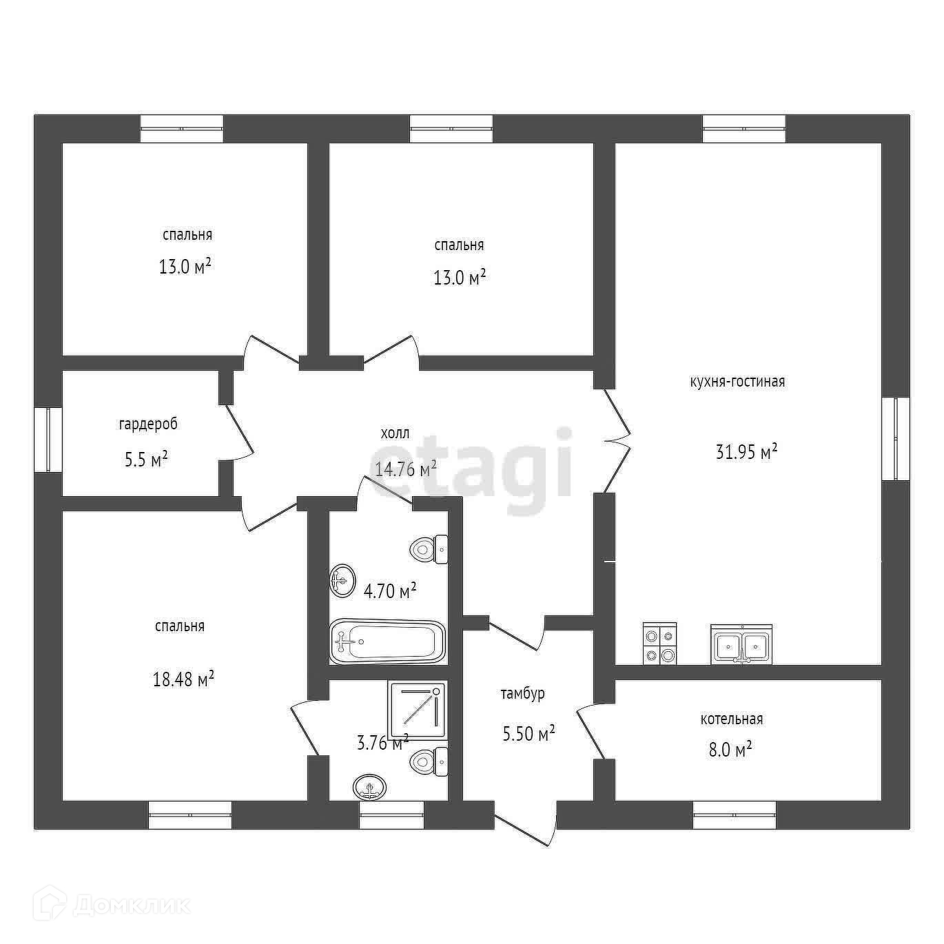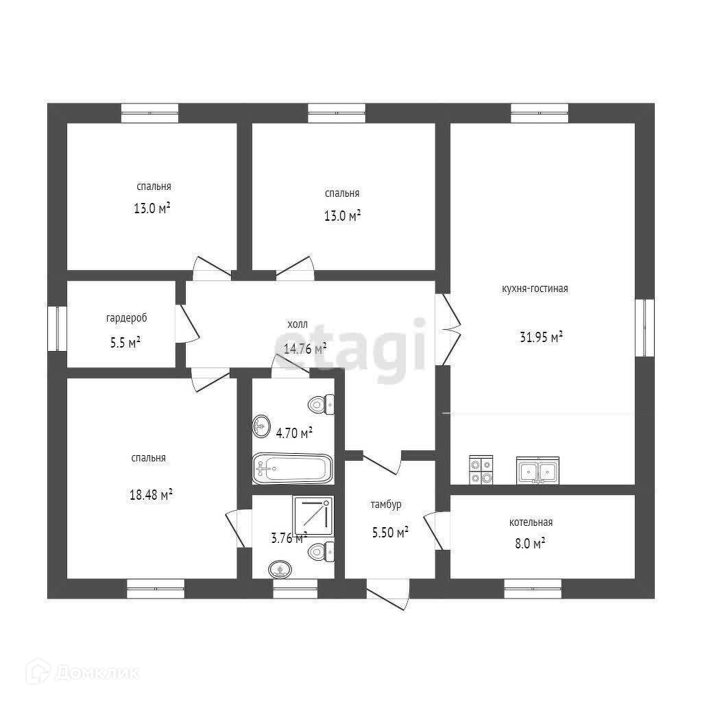 Площадь - Общая дома 101,5кв.м. , с 3-мя спальнями, просторная кухня гостиная.