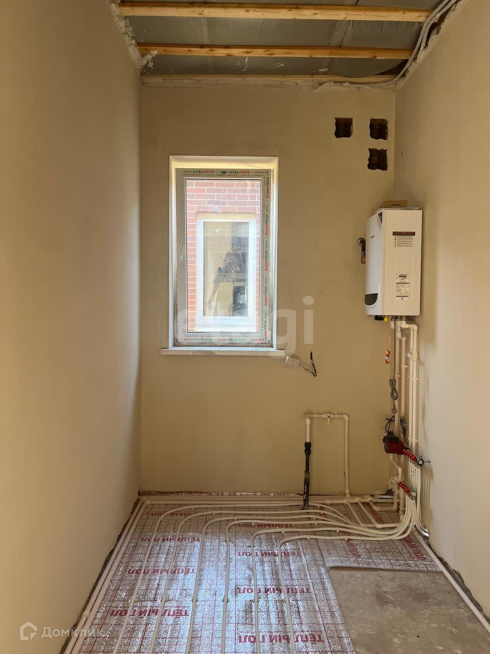 Дом выполнен в пред чистовой отделке, со стяжкой пола, потолок утеплен мин. ватой, стены после механической штукатурки уже под поклейку обоев, теплый пол.