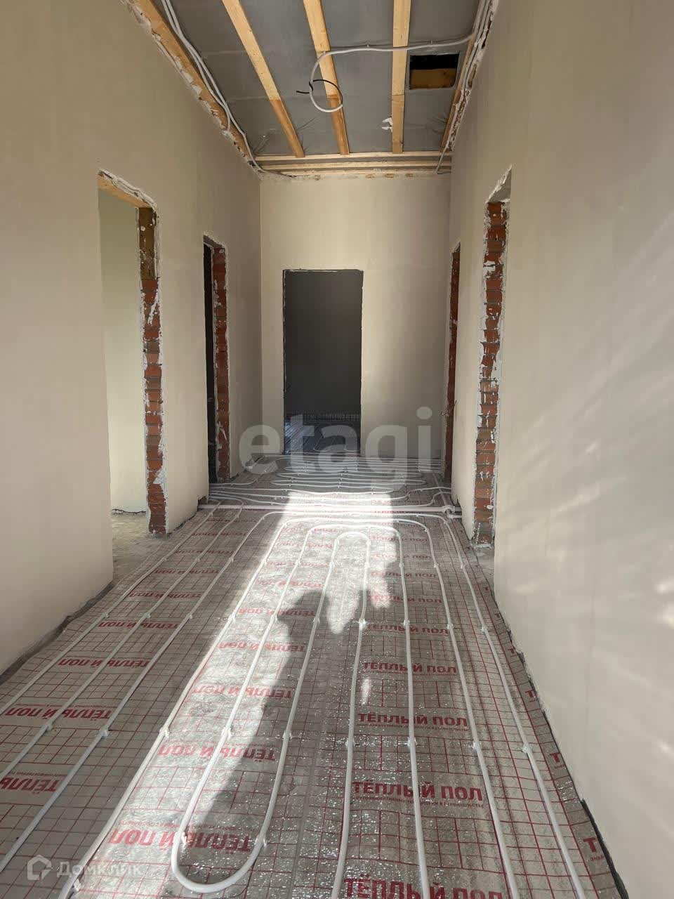 Дом выполнен в пред чистовой отделке, со стяжкой пола, потолок утеплен мин. ватой, стены после механической штукатурки уже под поклейку обоев, теплый пол.