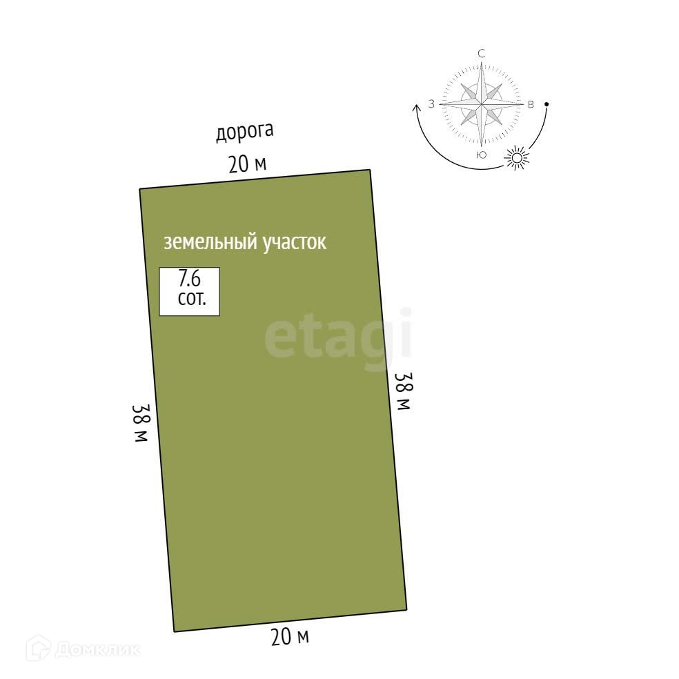 Площадь участка 7.6 сот.