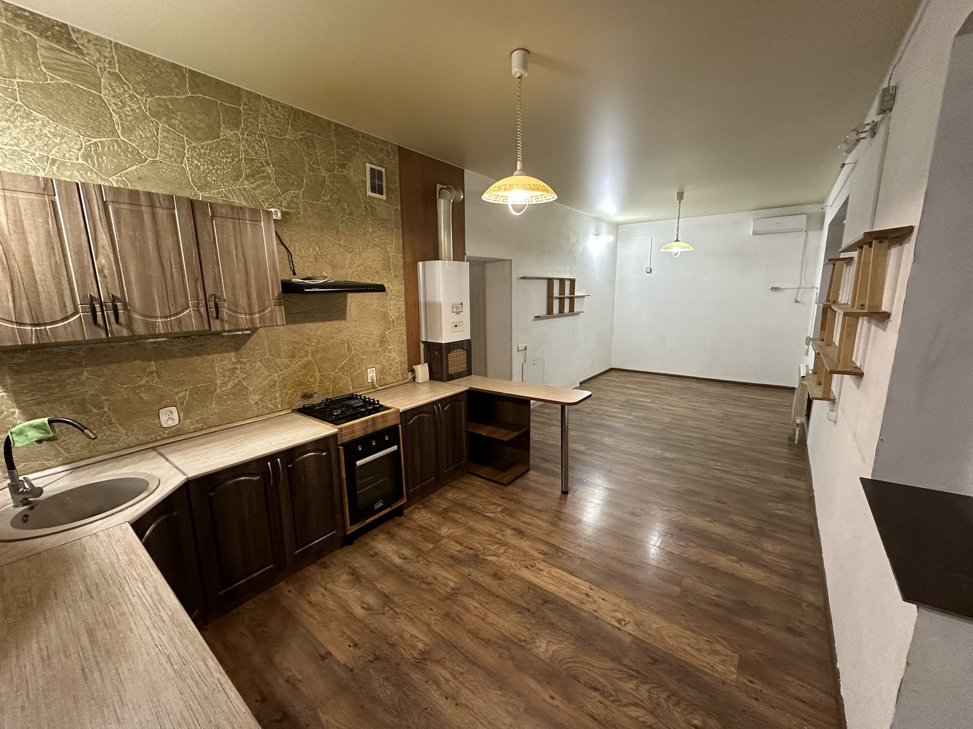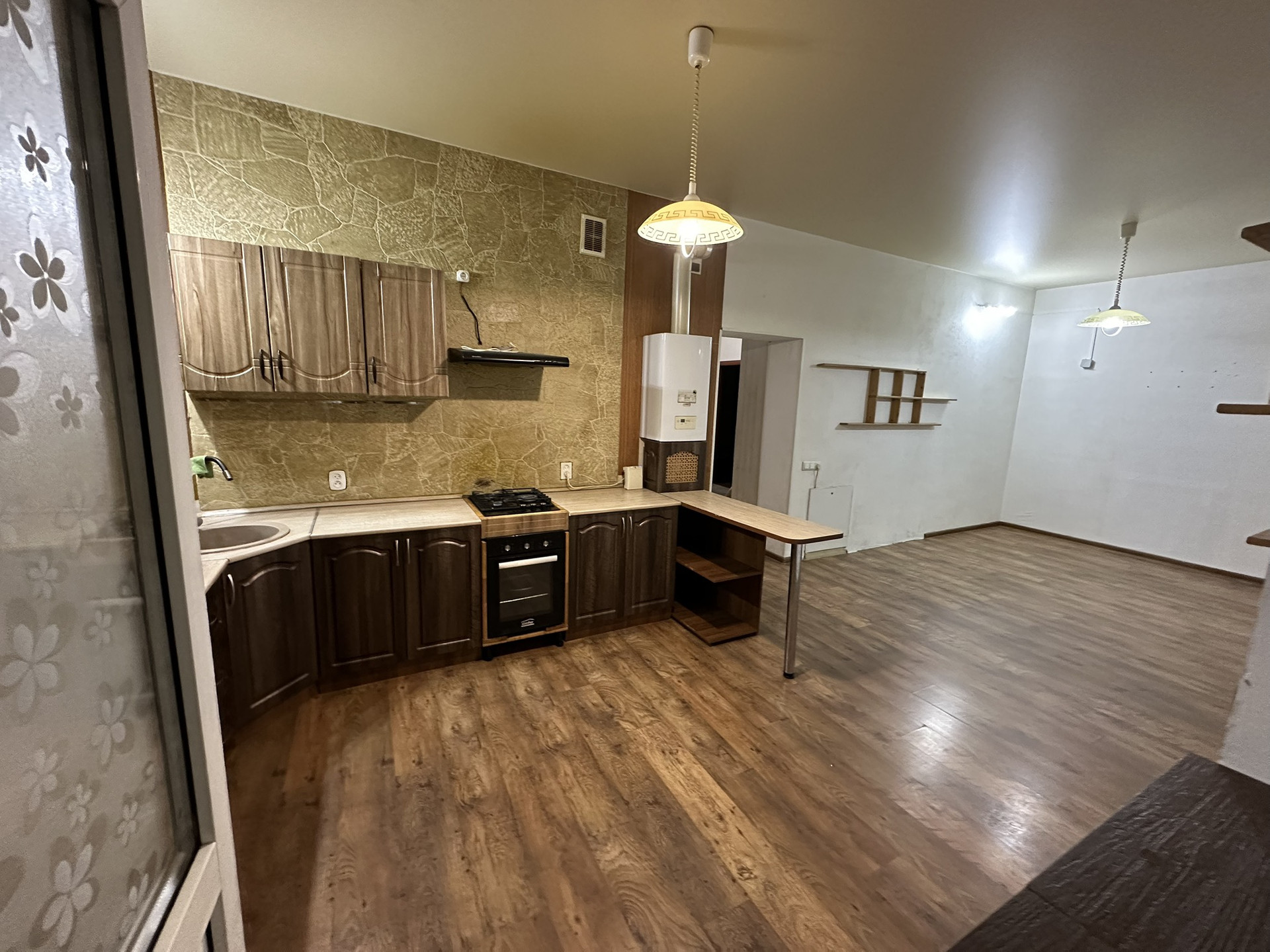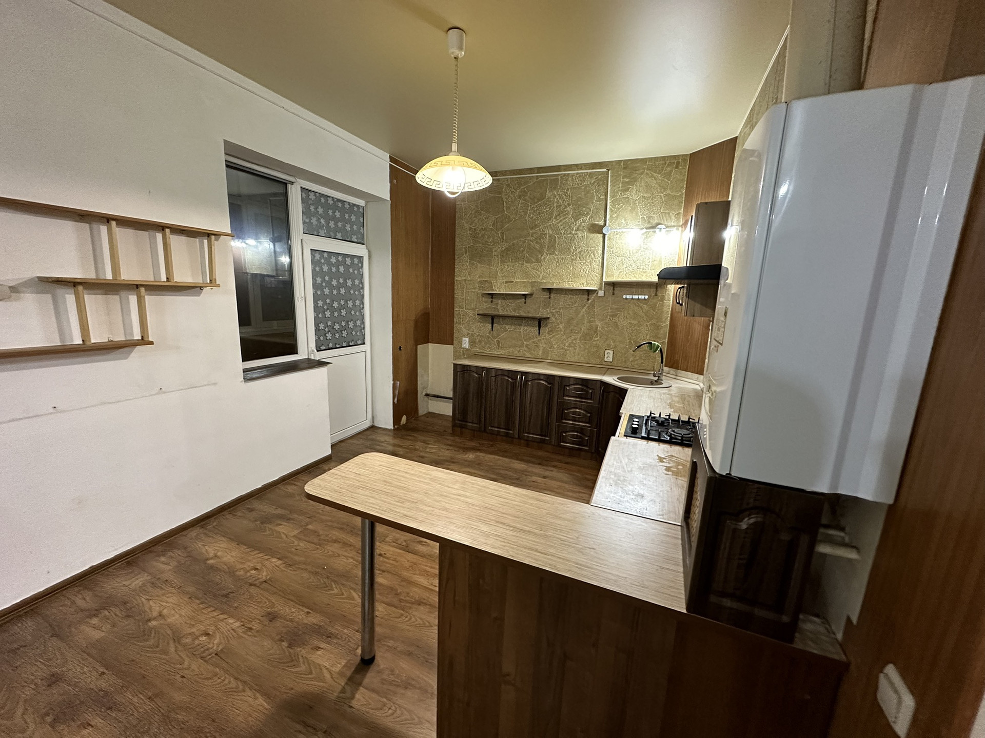 В кухне остаются варочная панель, духовка и вытяжка.