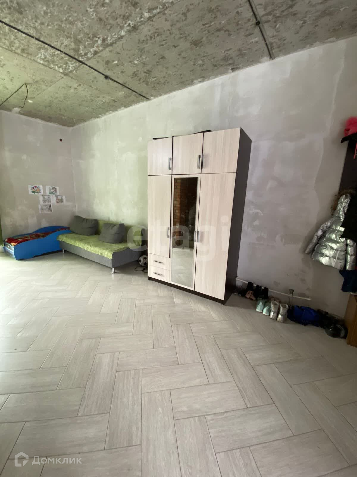 В доме выполнен частично ремонт: на полу уложена плитка, стены подготовлены под покрытие, сделать натяжной потолок, облагородить санузлы и ремонт готов. Установлена хорошая входная дверь, не под замену.