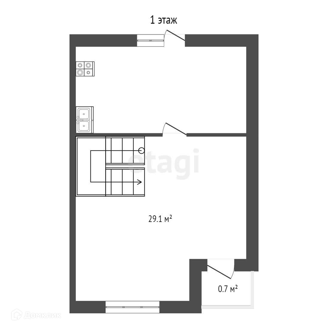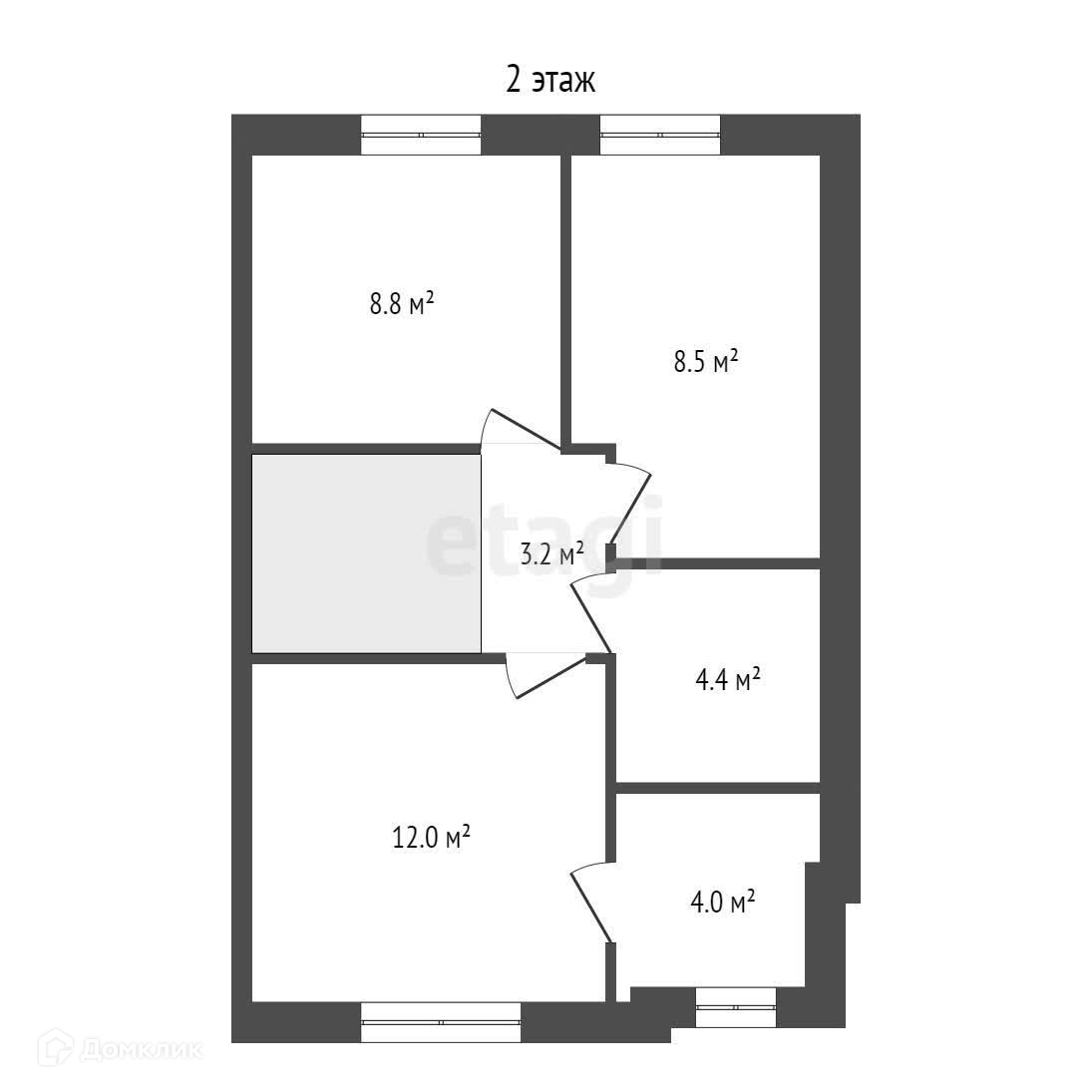 Дом 2-х этажный: на 1 этаже расположилась кухня-гостиная с выходом на задний двор, санузел. На втором этаже 3 комнаты, гардеробная и санузел.