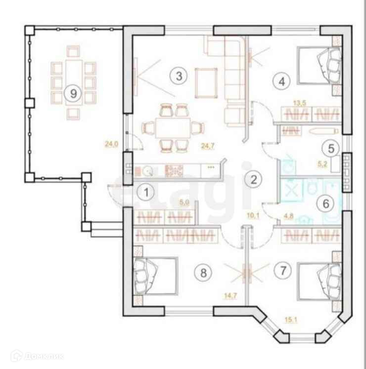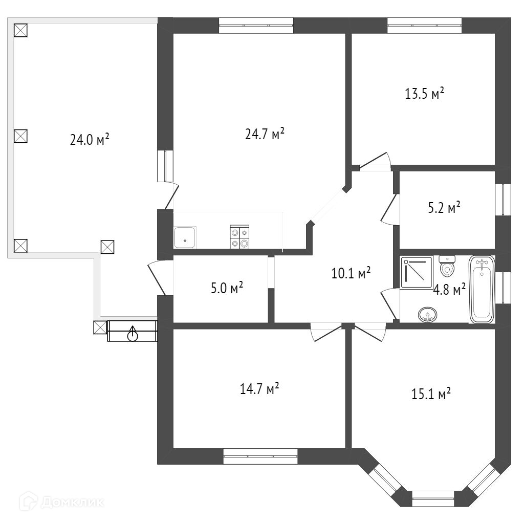 Общая площадь 124 м2