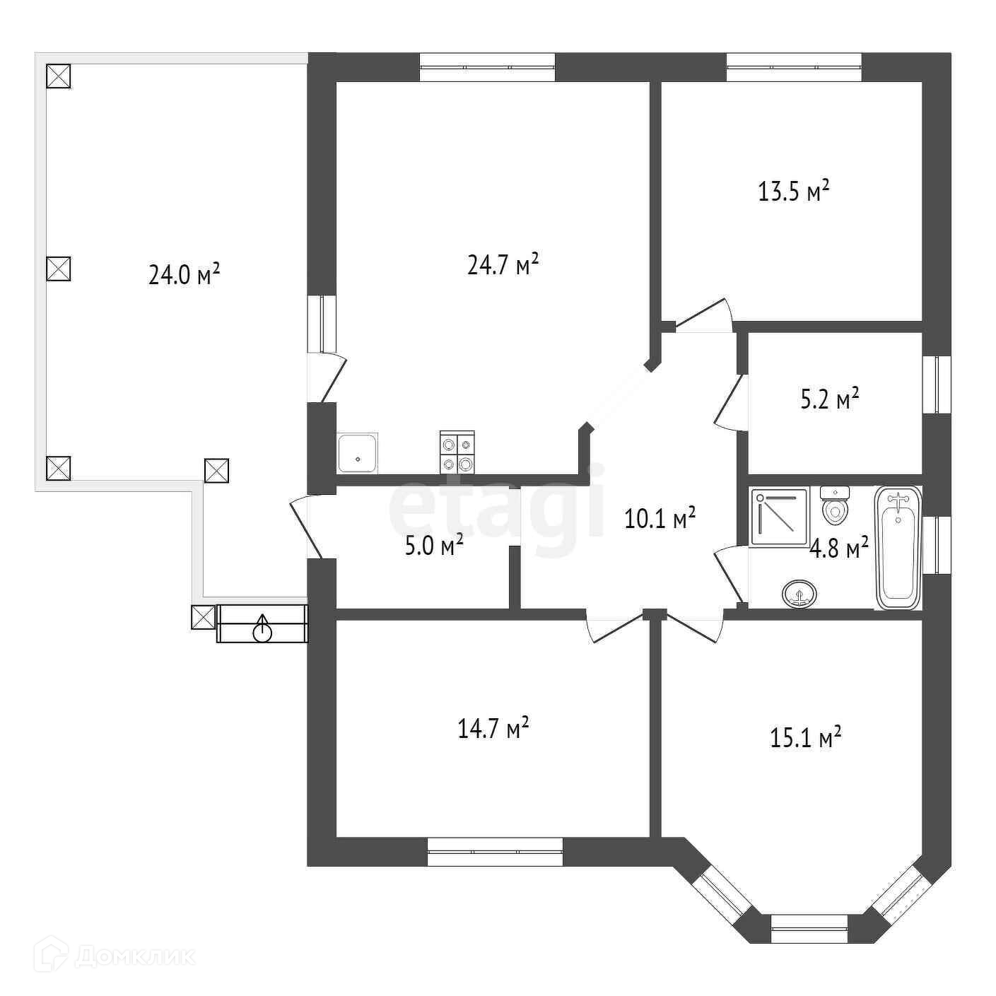 Общая площадь 124 м2