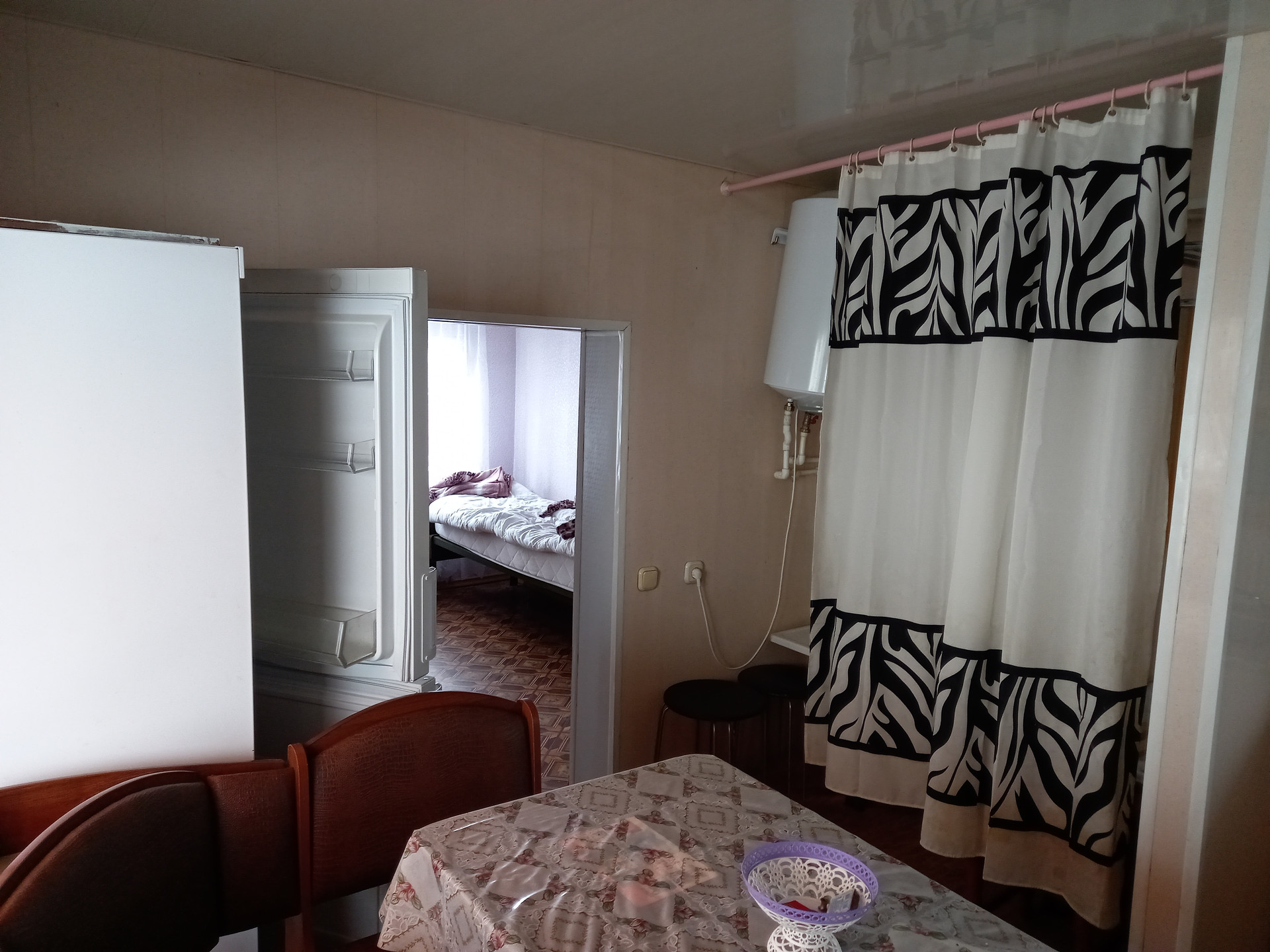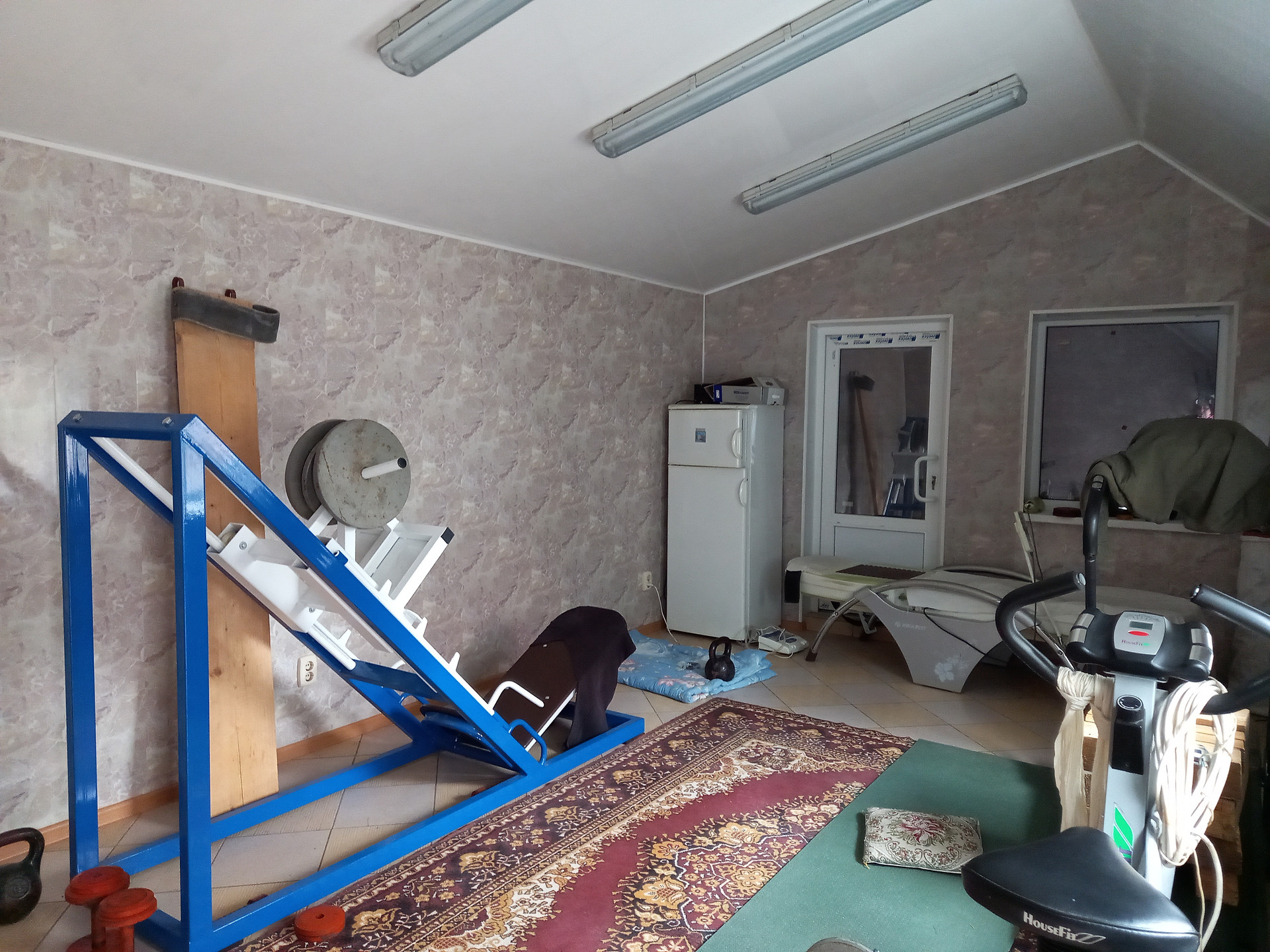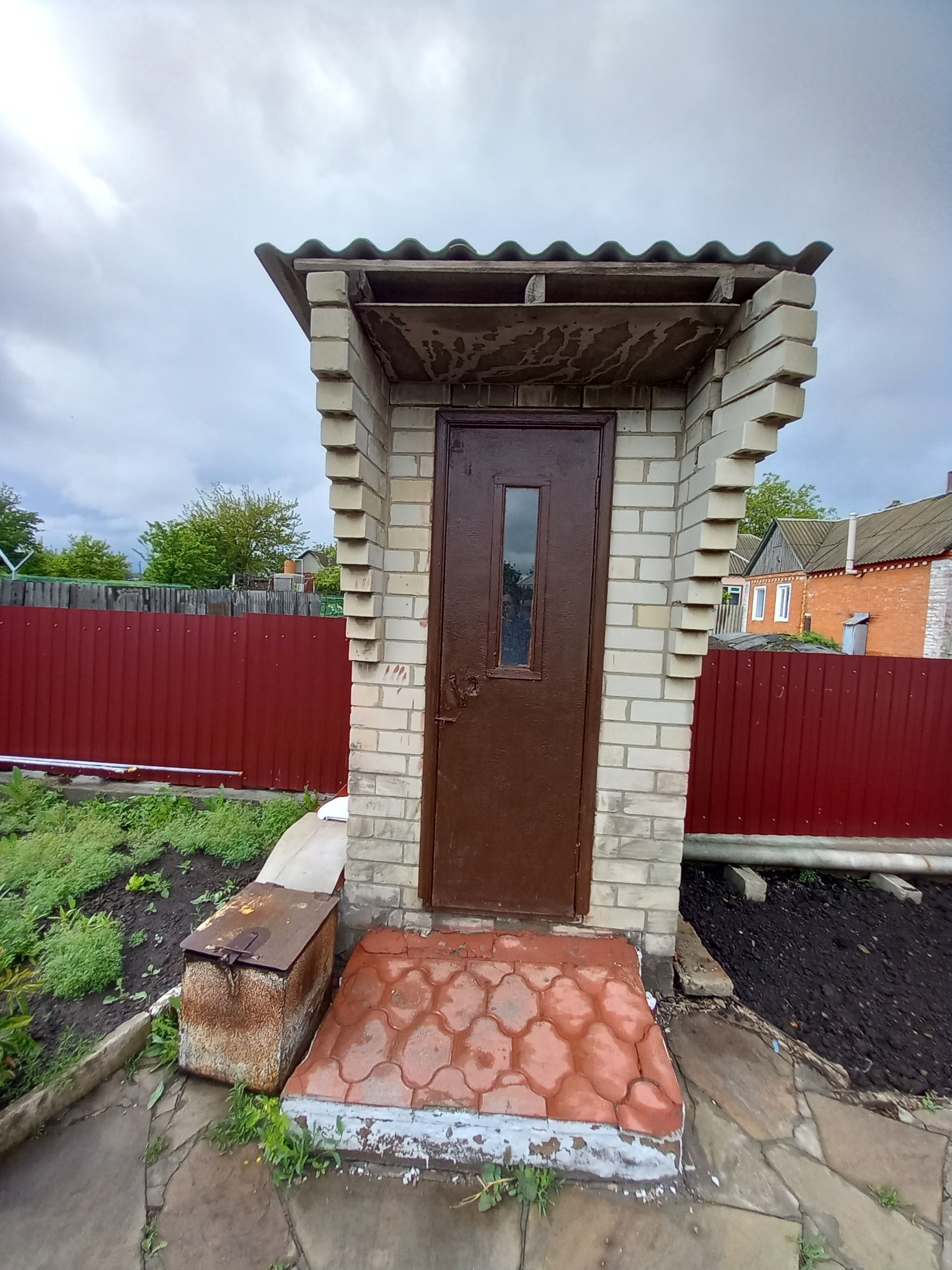 Во дворе находится гостевой домик (25 кв.м.), состоящий из двух комнат (ванна находится в кухне). Тут кухонная зона и ванна. Рядом дверь в тренажерный зал 25 кв.м, - сейчас так используется данное помещение. Изначально - это торговый павильон, который официально оформлен (можно открыть магазин). Данное помещение так же отапливается.