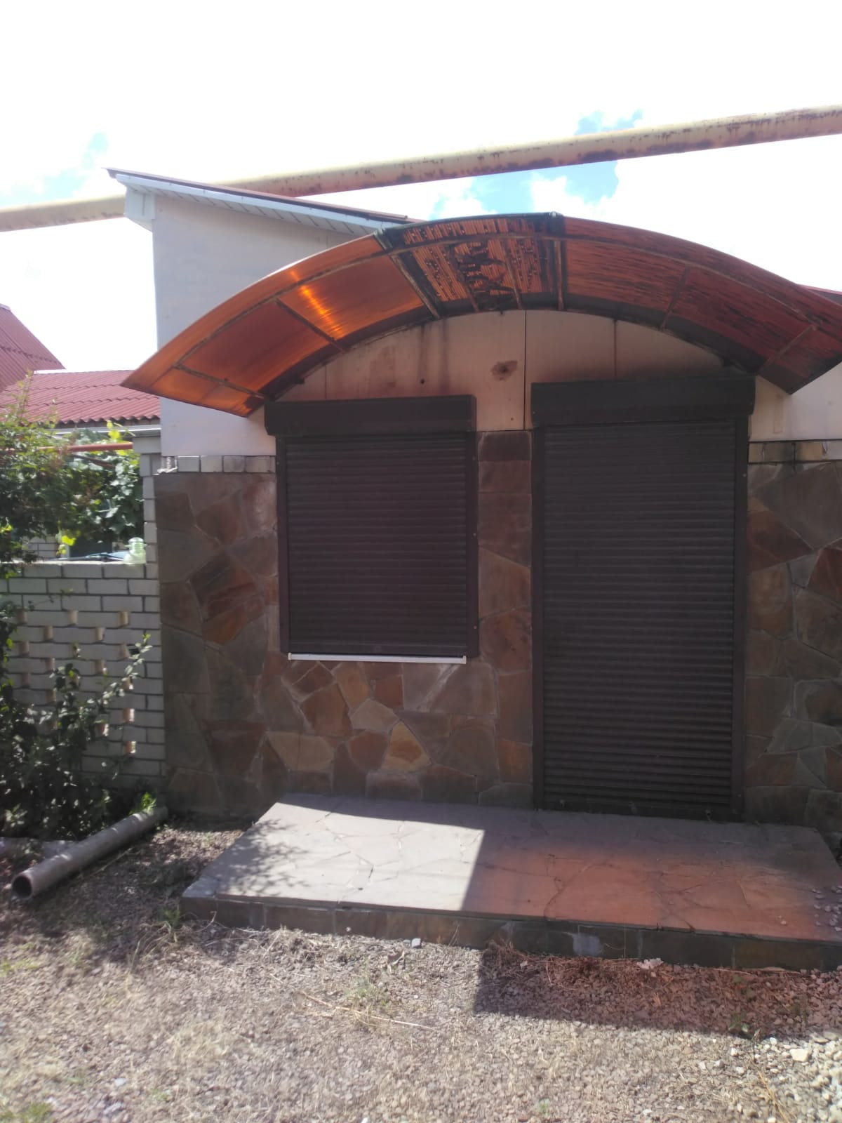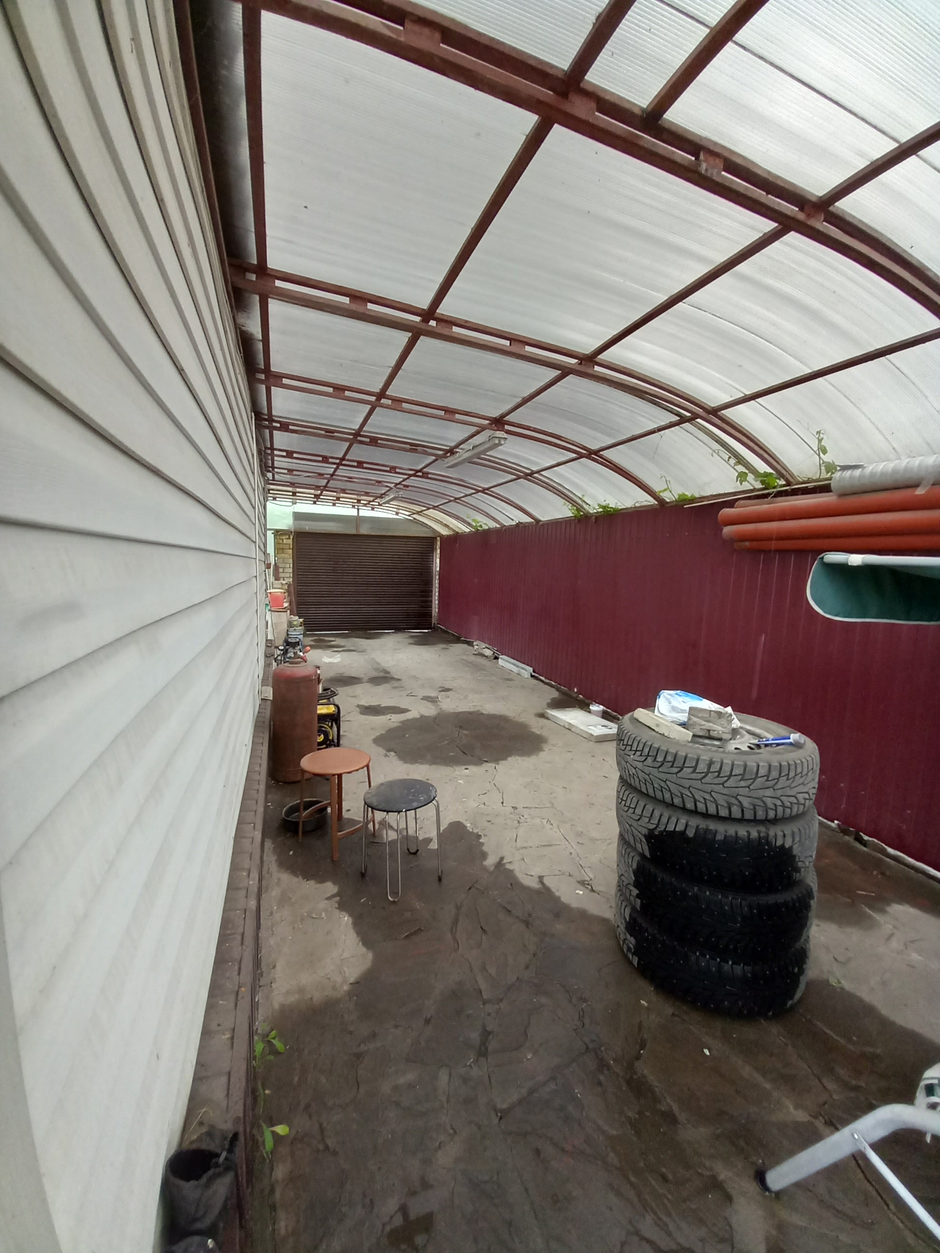 Во дворе находится большой гараж - под навесом. Автоматические рольставни.