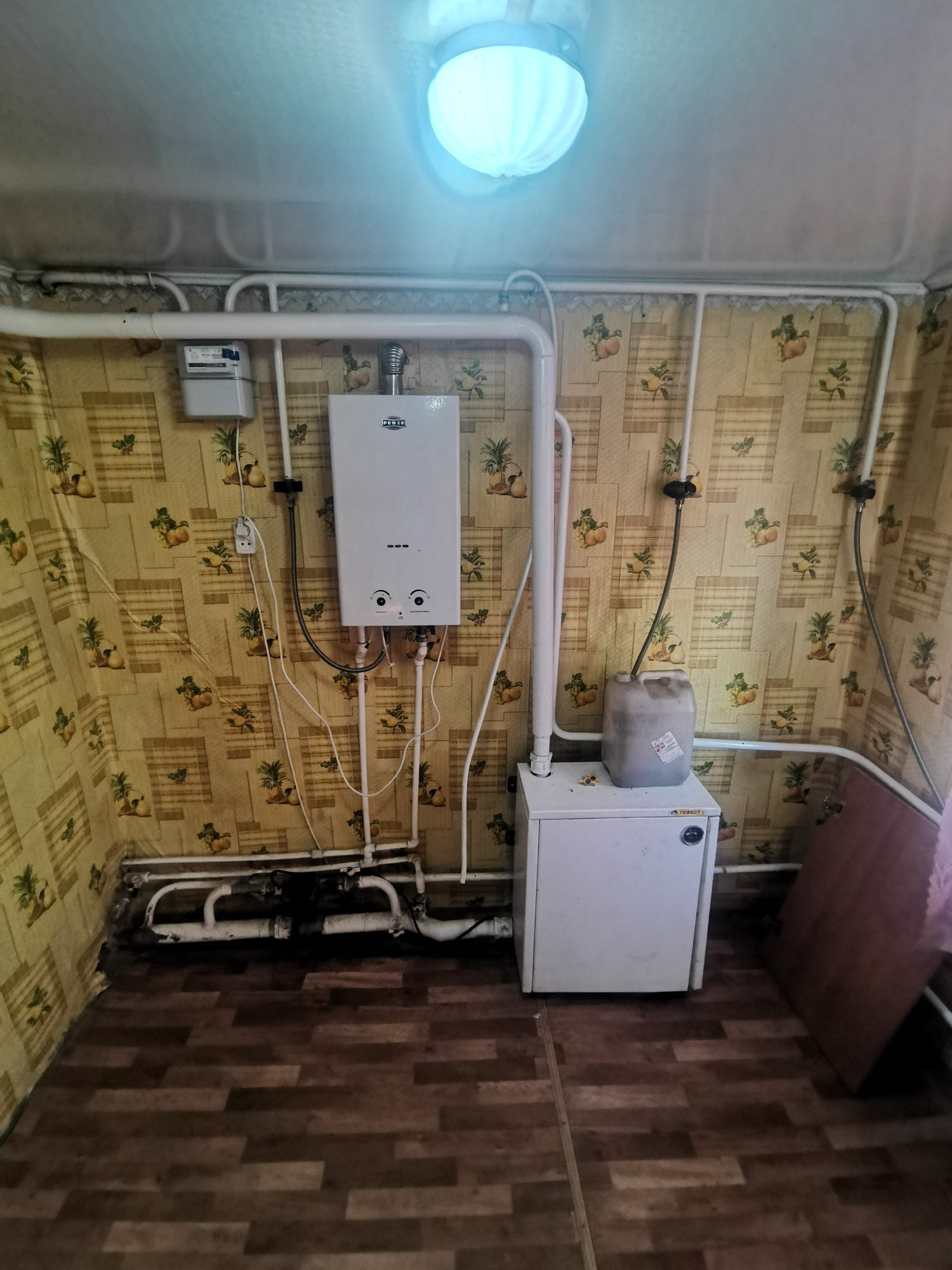 СОБСТВЕННОЕ ГАЗОВОЕ ОТОПЛЕНИЕ АОГВ ( напольный котёл, газовая колонка, газовый счётчик);