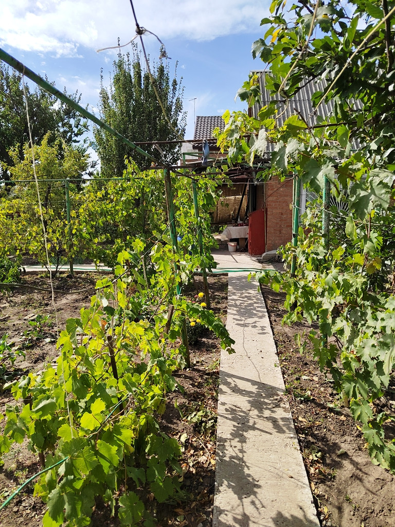 Участок прямой ровной формы с фруктовыми деревьями,виноградниками двух сортов. Территория обработана для посадки овощей!