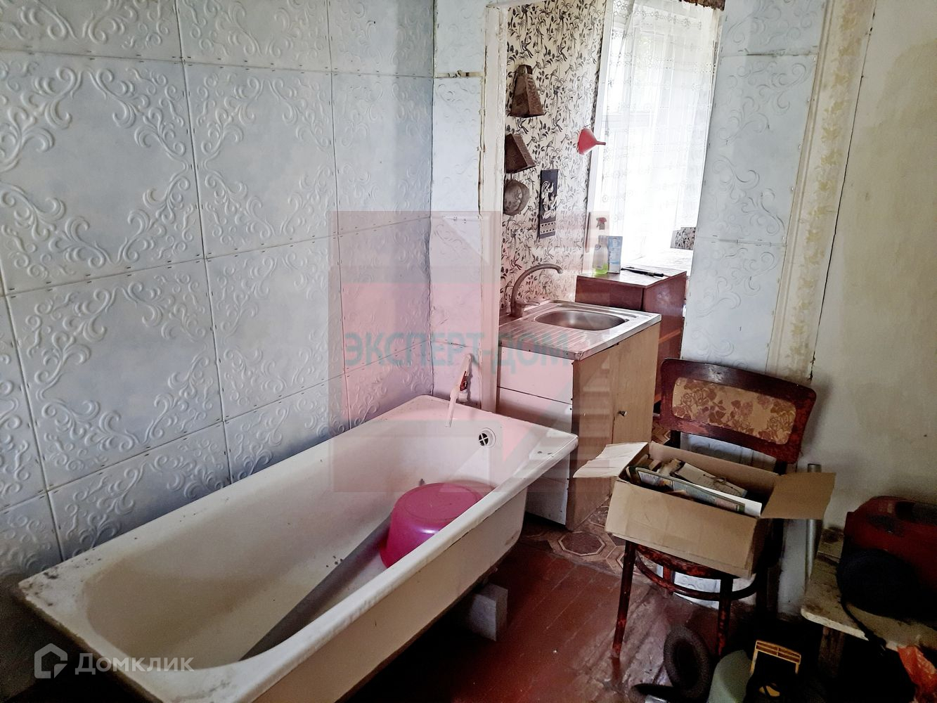 Дом саманный, снаружи штукатуренный. Крыша шифер. Высота потолков 2,8 м. В доме 4 комнаты. На стенах обои. Полы деревянные.