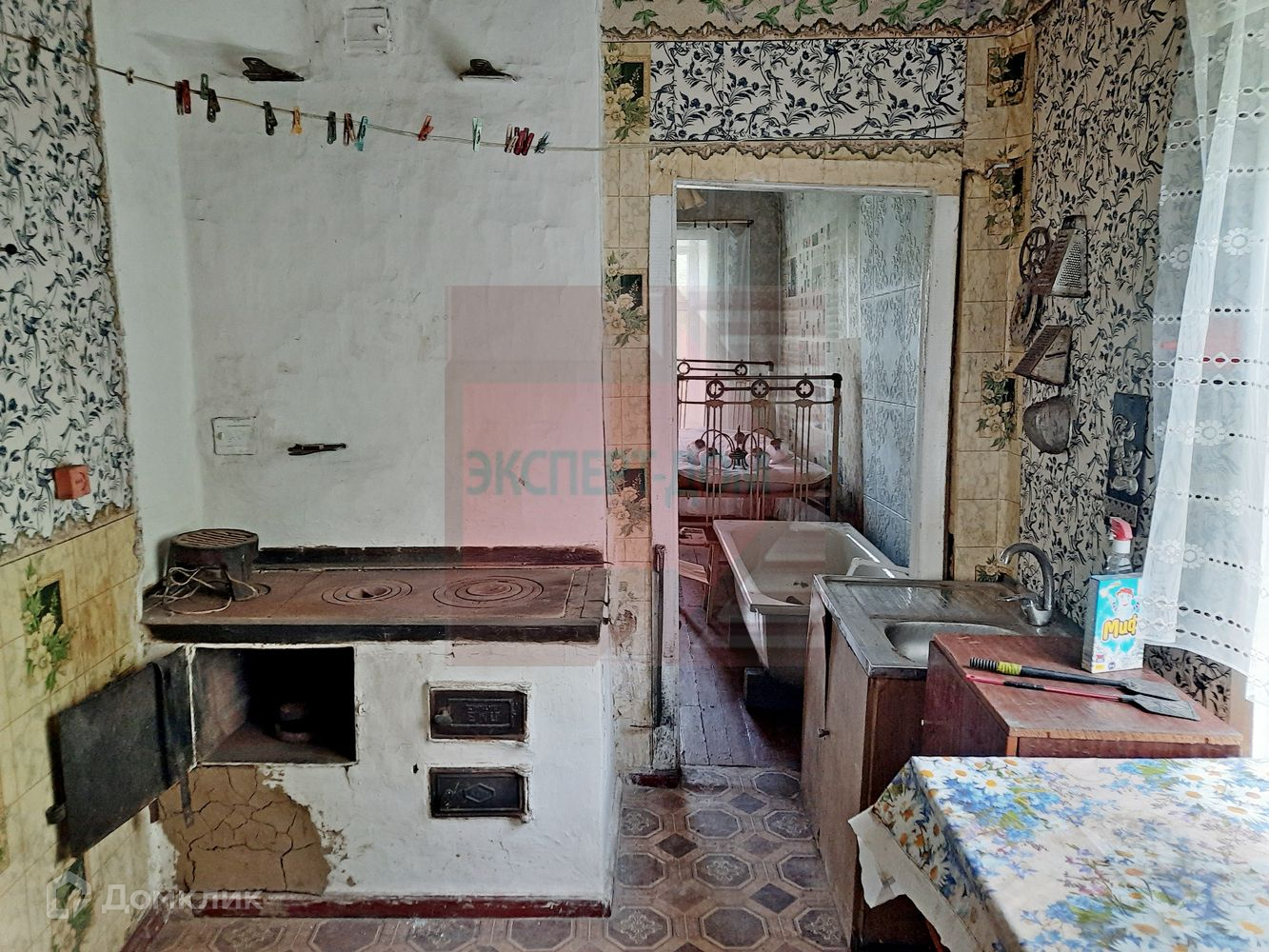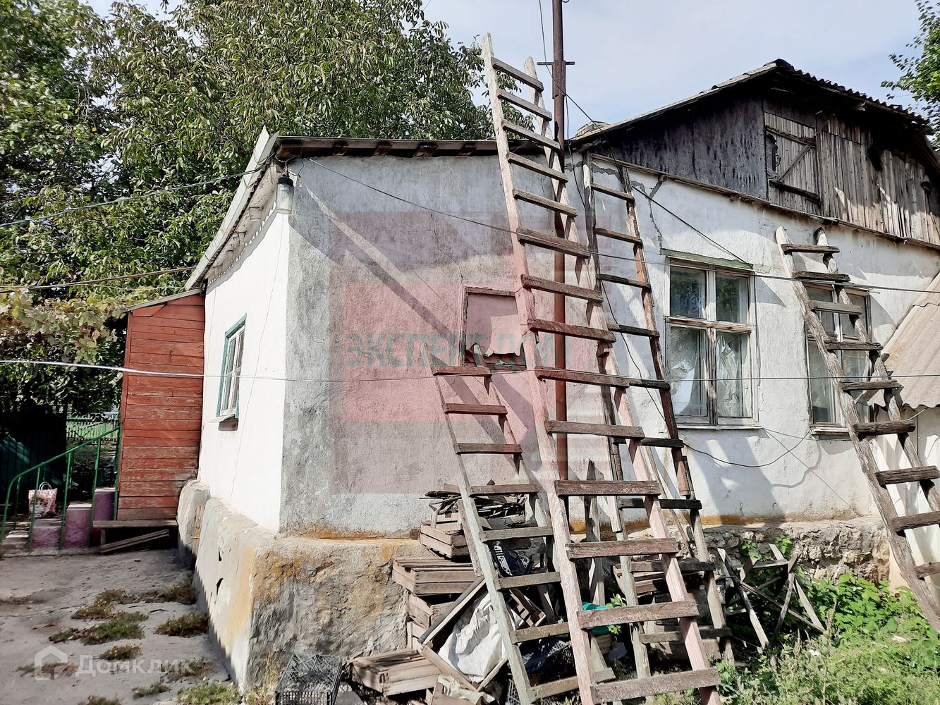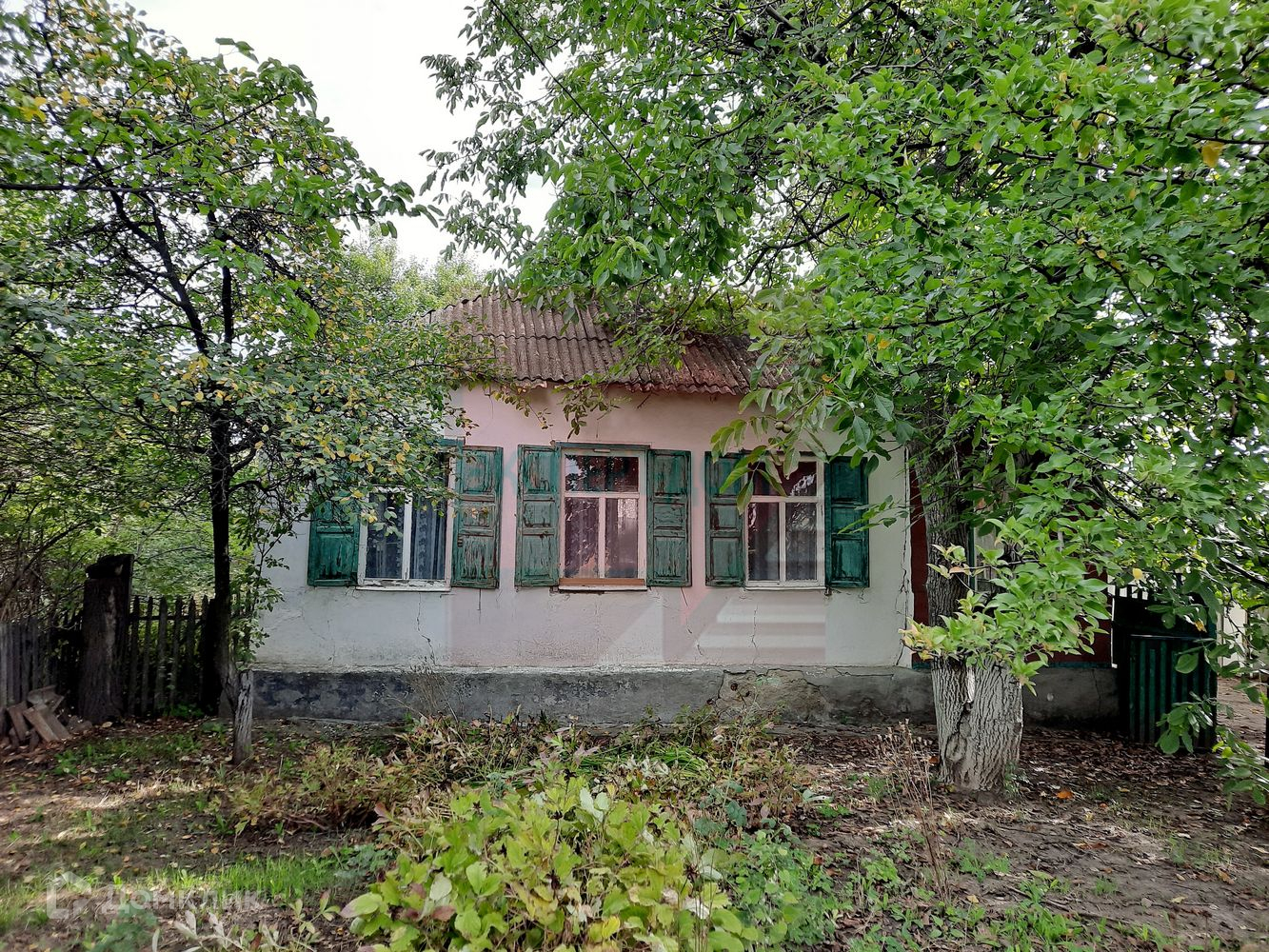 Дом саманный, снаружи штукатуренный. Крыша шифер. Высота потолков 2,8 м. В доме 4 комнаты. На стенах обои. Полы деревянные.