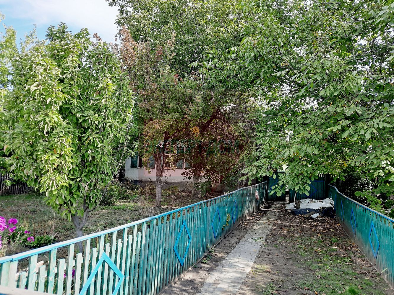 На участке посажены вишни, яблони, черешня, абрикоса, виноград, много грецких орехов.