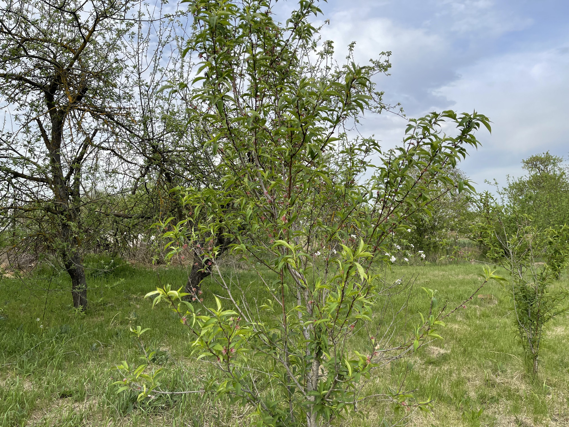 На участке кирпичный гараж, виноградная беседка, хоз. постройки, скважина, колонка для полива (металлическая), плодоносящие фруктовые деревья (черешни, вишни, яблони, сливы, персики), кустарники (малина, смородина).
