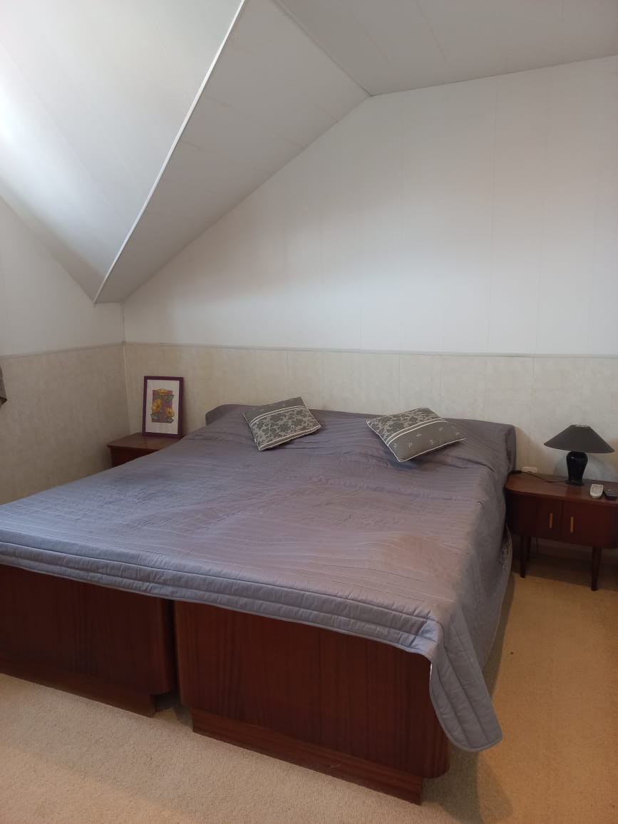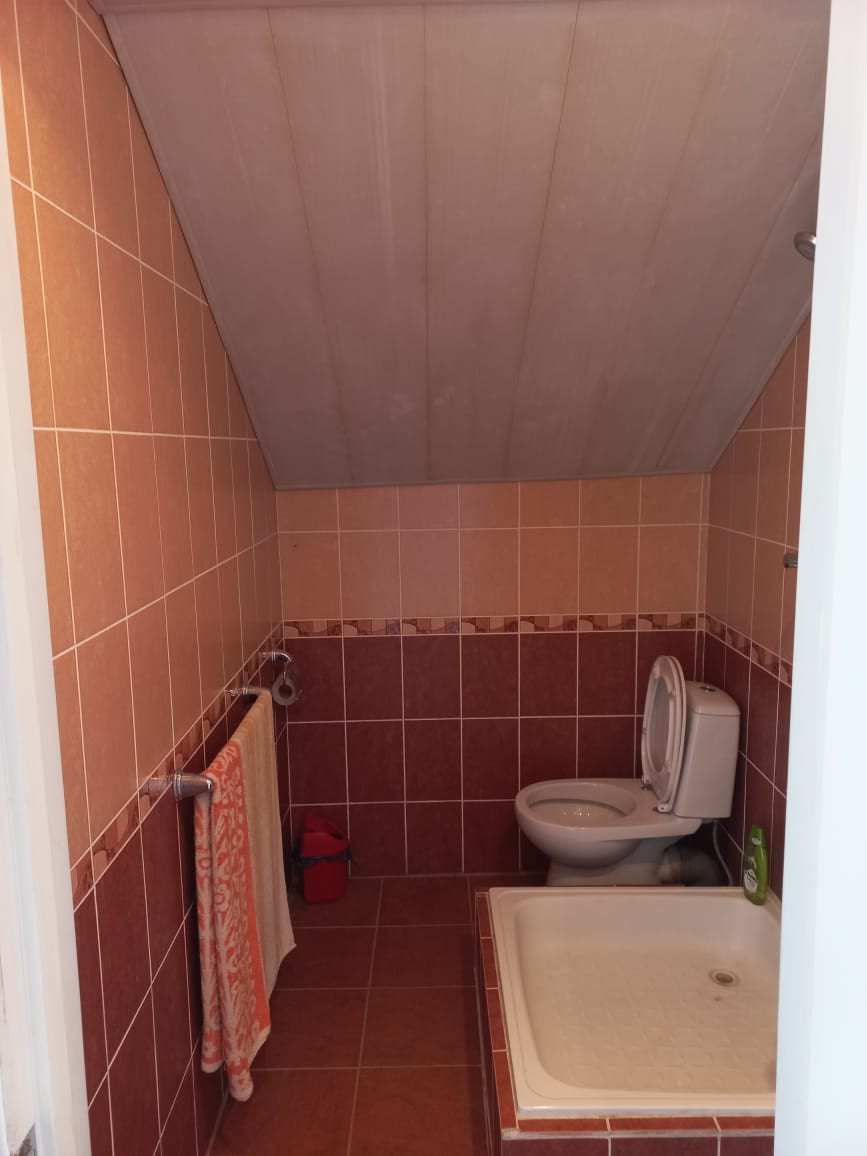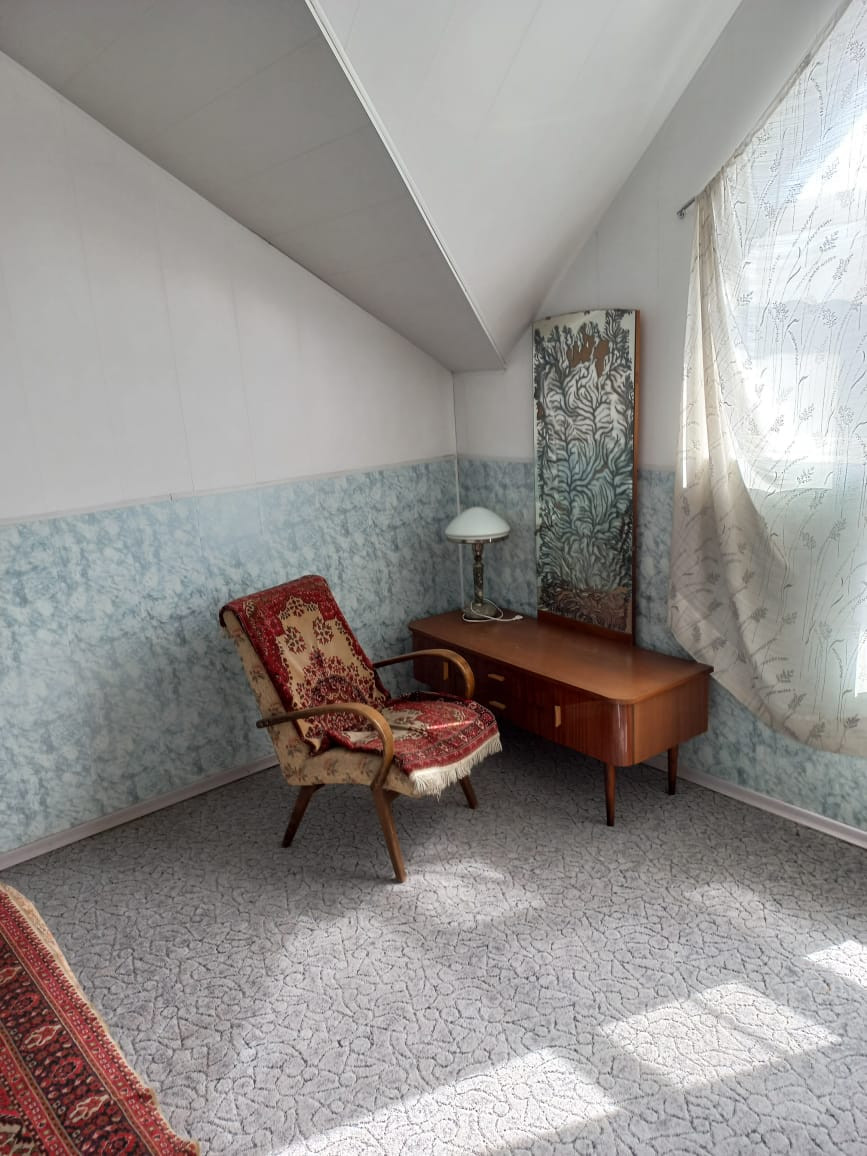 На первом этаже просторная кухня-гостиная и санузел, на втором этаже две спальни и санузел.