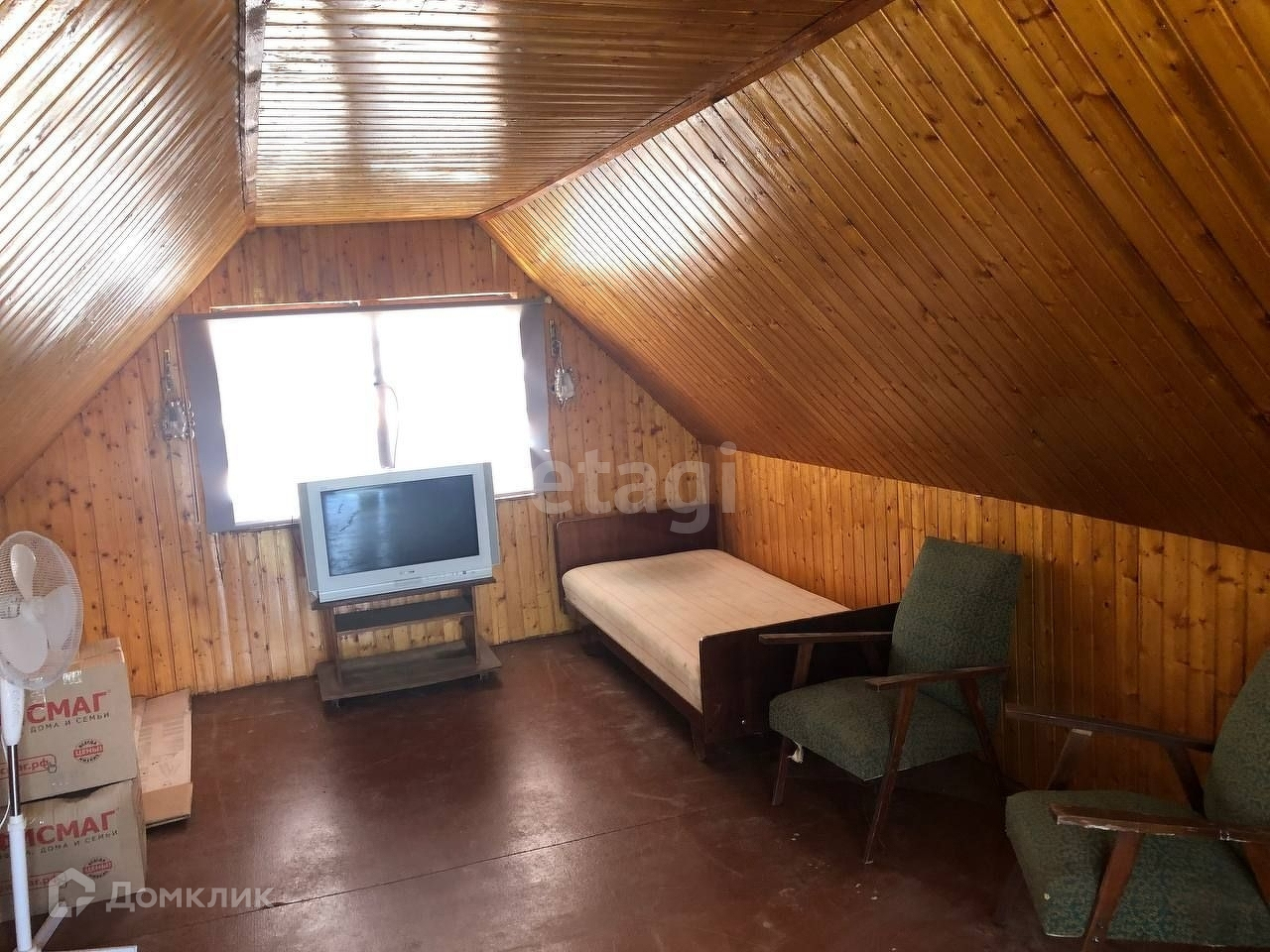 На участке имеется садовый дом 48,4 кв.м. Дом холодный летний. Первый этаж: коридор, кухня, жилая комната. Крытая беседка под елью. Второй этаж мансардный, обшитый изнутри деревом. Душ и туалет летние на улице.
