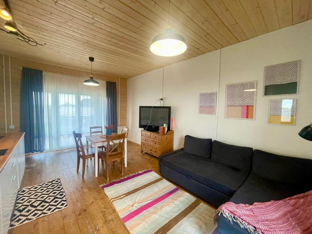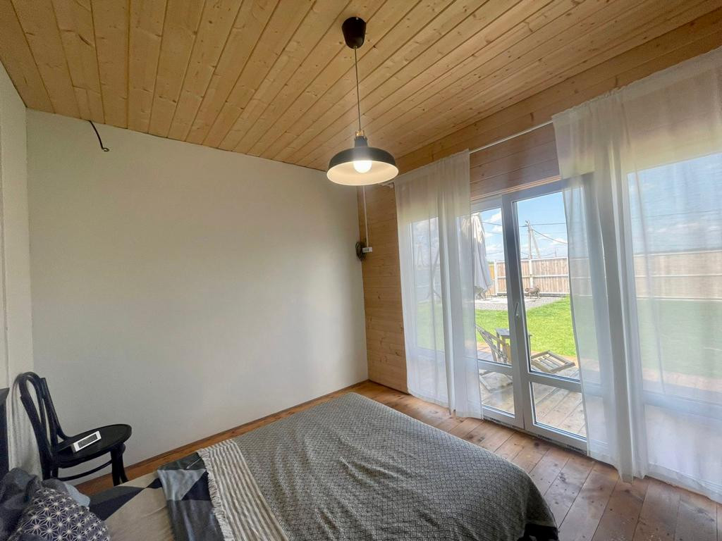 В доме 3 комнаты. 2 отдельные спальни, просторная гостиная, совмещённая с кухней и выходом на террасу 30кв.м., которую при желании, можно остеклить или увеличить дом.