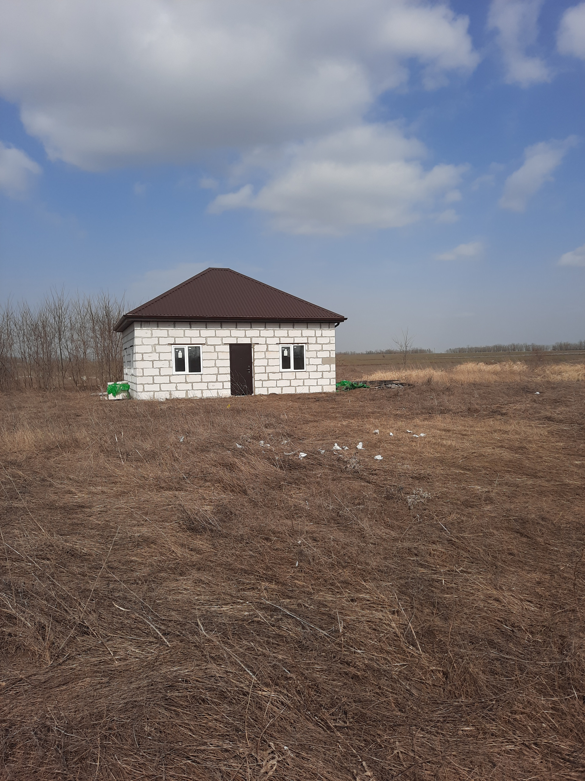 Участок ровный. Построили только коробку.