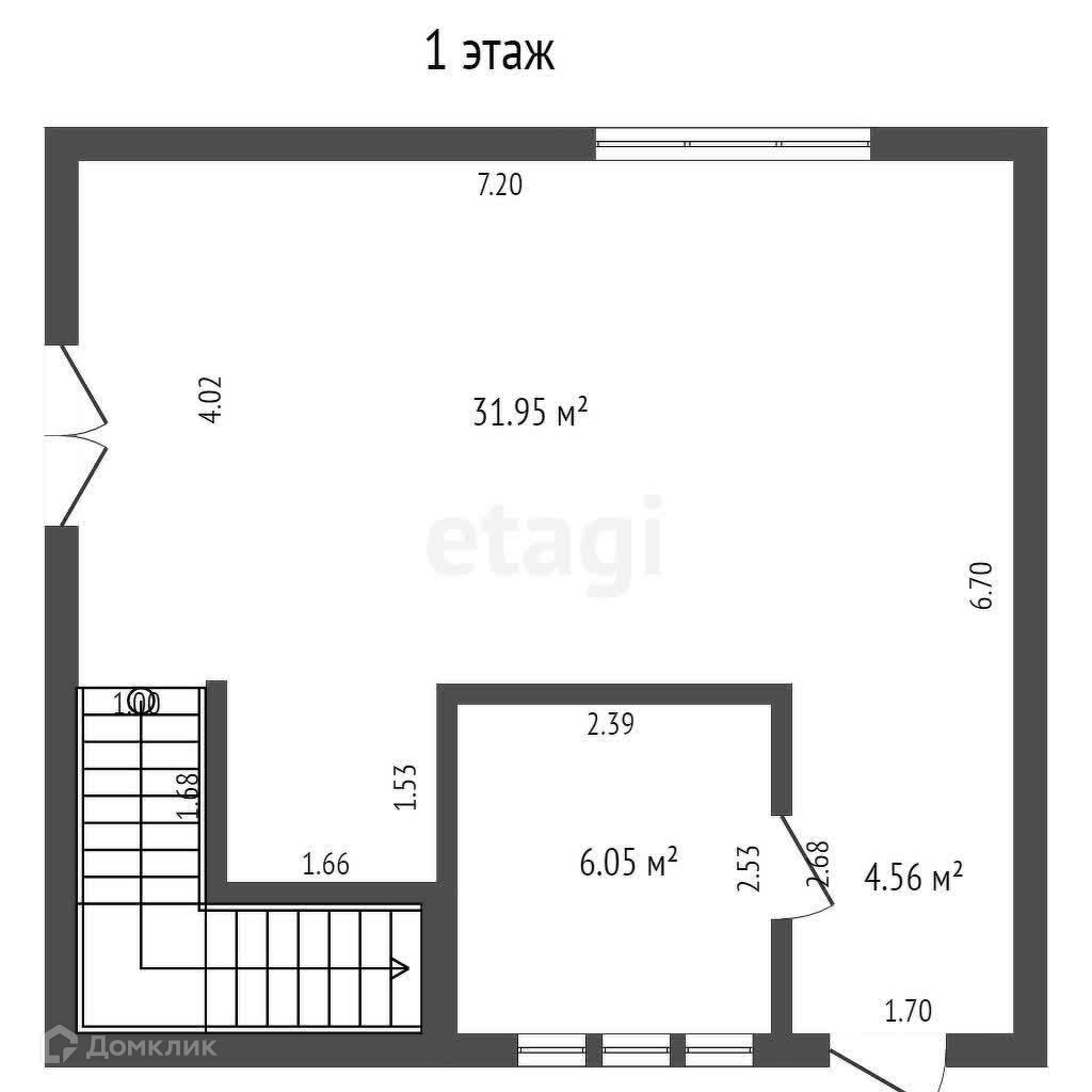 На первом этаже: прихожая, санузел, кладовая (под лестницей) столовая-гостиная, гардеробная.