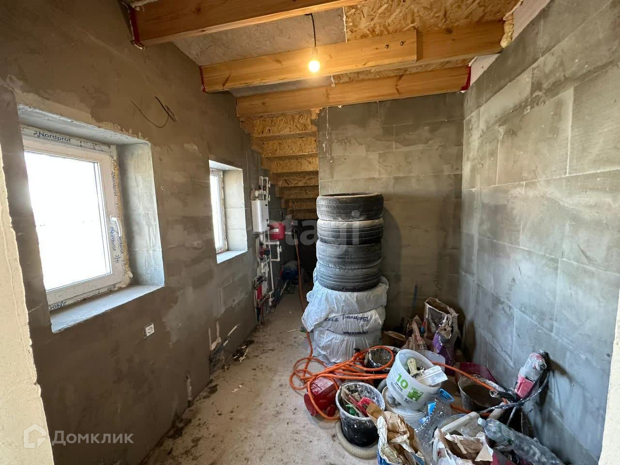 Энергосберегающий дом, низкие расходы на отопление: фундамент УШП (утеплённая шведская плита), толщина стен 40 см, двухкамерные стеклопакеты. Все коммуникации заведены в дом и разведены по дому. Электричество 3 фазы, 15кВт. Установлены все розетки и выключатели (проходные выключатели на лестнице и в гостинной). Отопление на 1-м этаже - тёплые полы, на 2-м этаже - радиаторы. Камин дровяной. Каминная топка Астон 700. Газ в 2025г., после подключения просто замена электрического котла на газовый. Стены оштукатурены и зашпаклеваны. На первом этаже прихожая, санузел, кладовая (под лестницей) столовая-гостинная, гардеробная. На втором этаже 2 спальни, большой холл, отдельное компьютерное рабочее место.