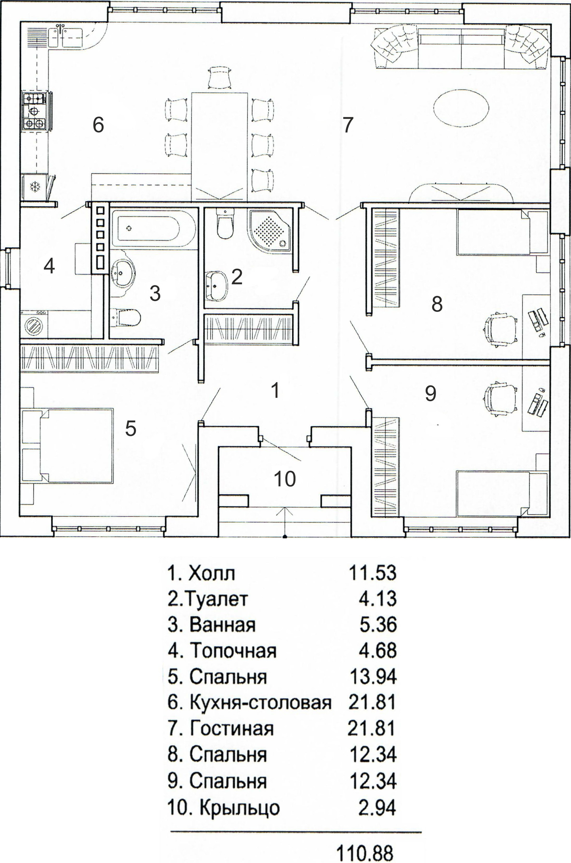 Общая площадь 110.9 м2