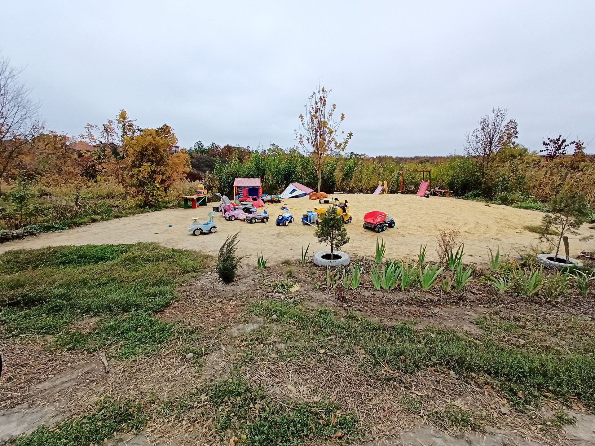 По задней границе участка лесополоса, есть калитка, можно ходить гулять.